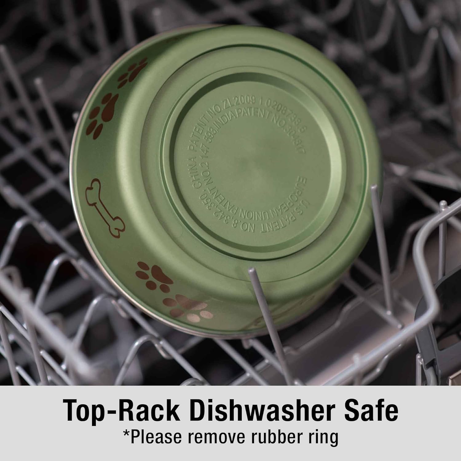 - REMOVEABLE RUBBER BASE - This feature prevents and ensures no spill water bowl for dogs. Itâs perfect for puppy food and makes an excellent addition to your dog feeding station. Watch the bowl stand steady on your pet food mat, making it a great complement to your dog mat and other dog stuff.