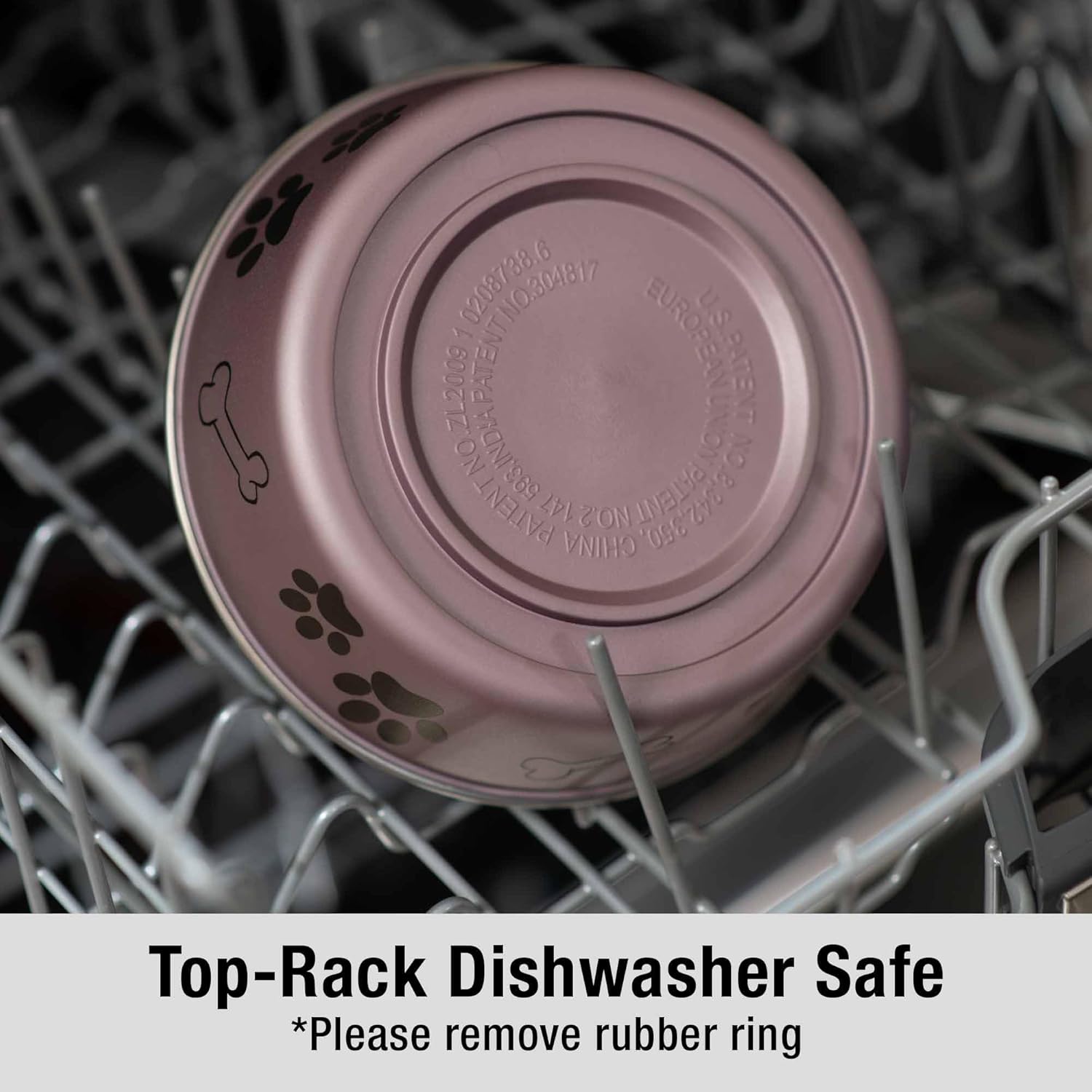 - REMOVEABLE RUBBER BASE - This feature prevents and ensures no spill water bowl for dogs. Itâs perfect for puppy food and makes an excellent addition to your dog feeding station. Watch the bowl stand steady on your pet food mat, making it a great complement to your dog mat and other dog stuff.