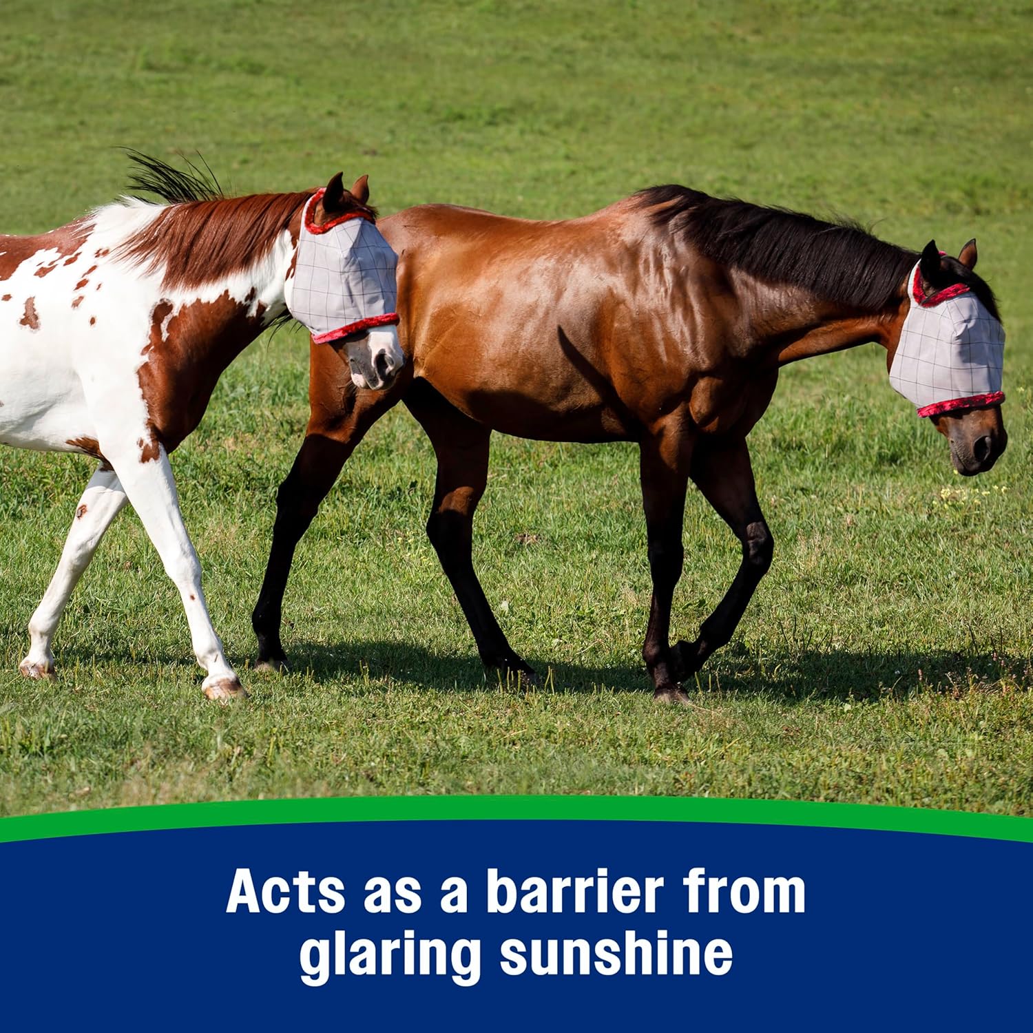 - INNOVATIVE DESIGN extends over horseâs face to provide extended coverage against insects and glaring sunlight.