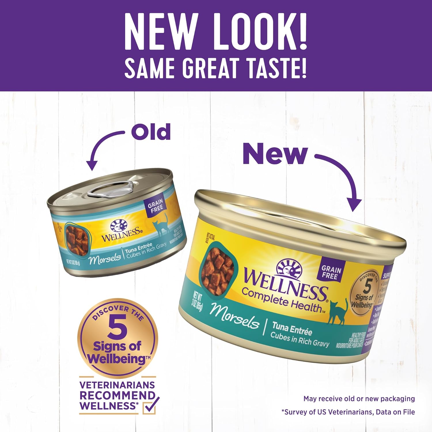 Wellness Complete Health Cubed Adult Wet Cat Food, Natural, Protein-Rich, Grain Free, 3 Ounce, 24 Pack, (Tuna Entrée)