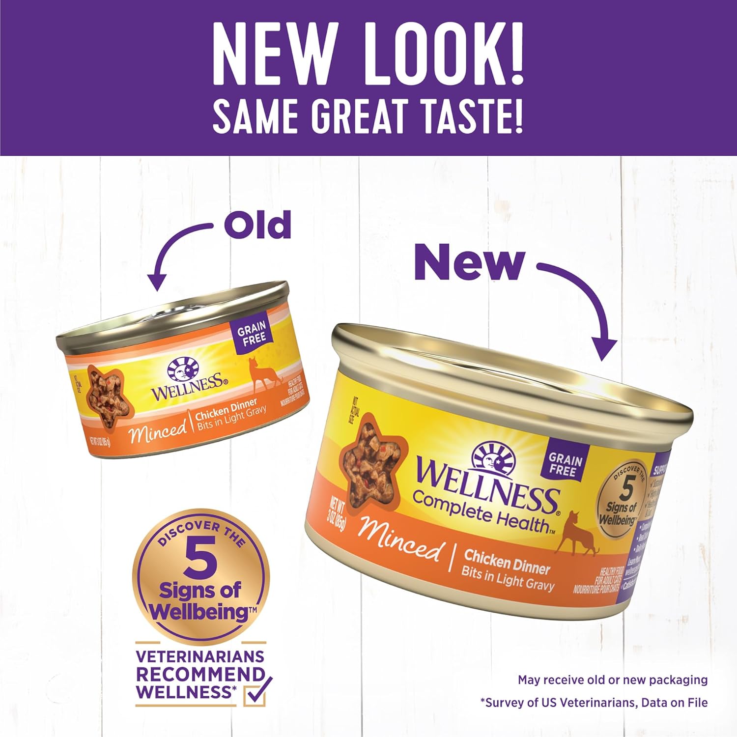Wellness Complete Health Minced Adult Wet Cat Food, Natural, Protein-Rich, Grain Free, 3 Ounce , 24 Pack, (Chicken Entrée)