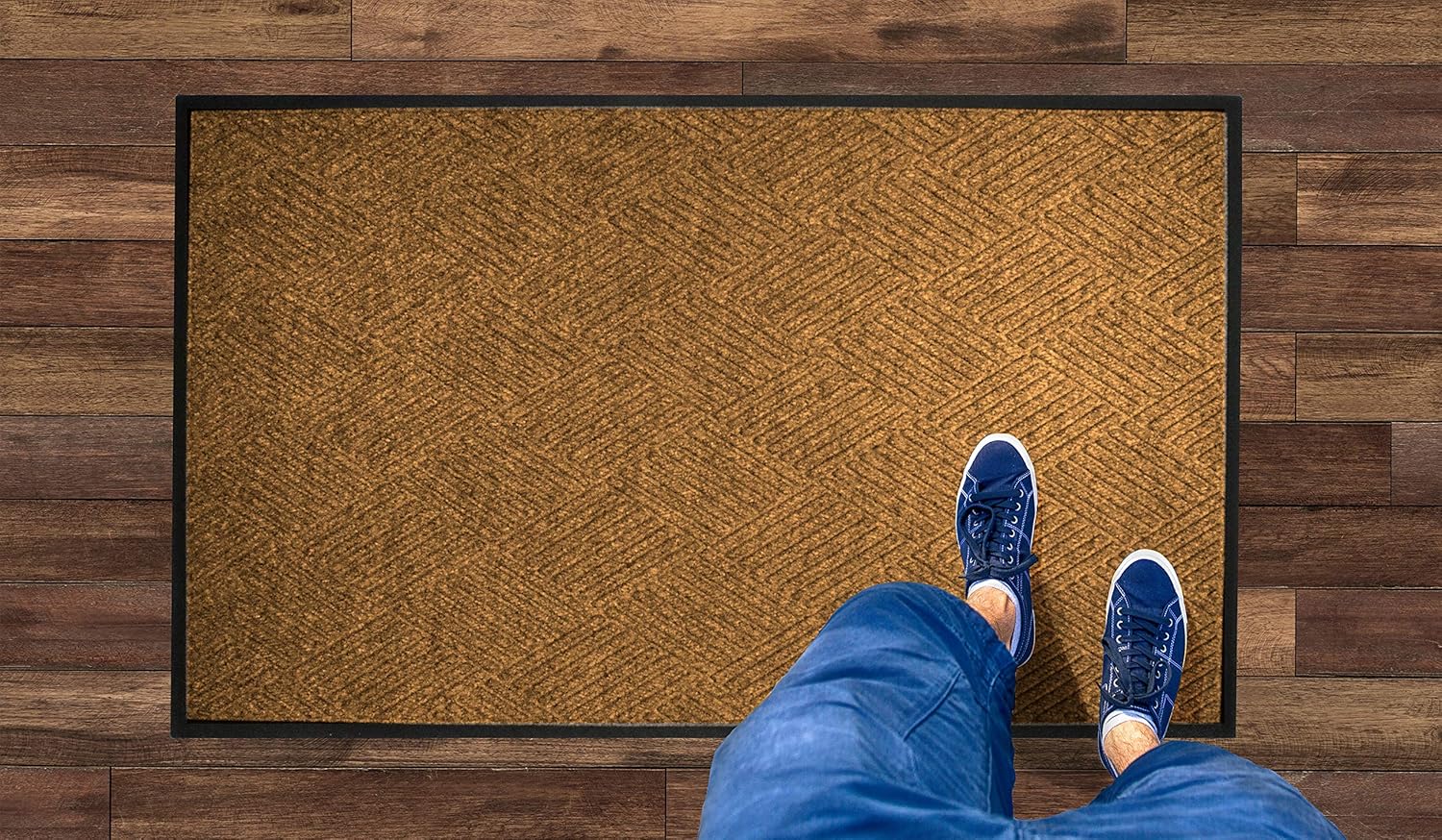 WaterHog Diamond | Commercial-Grade Entrance Mat with Rubber Border – Indoor/Outdoor, Quick Drying, Stain Resistant Door Mat (Medium Brown, 6' x 6')