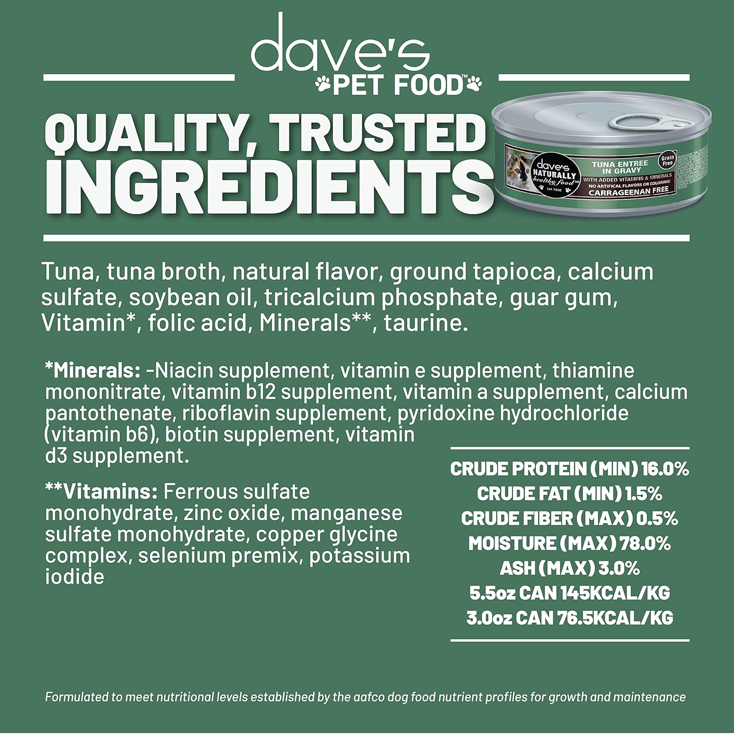 - ADDED VITAMINS & MINERALS. With flavor and nutrition at the forefront, your cat will love the taste of Dave’s nutrient-dense recipe.