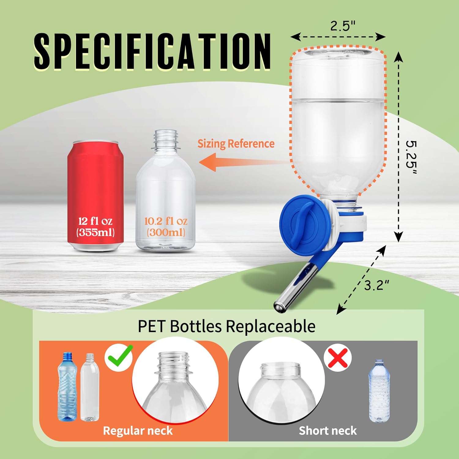 - 🐾 Mini-Sized Nozzle (10mm) is recommended for Guinea Pig, Ferret, Hamster, Bunny. / Made of BPA Free Material/ 10.2 oz Capacity.