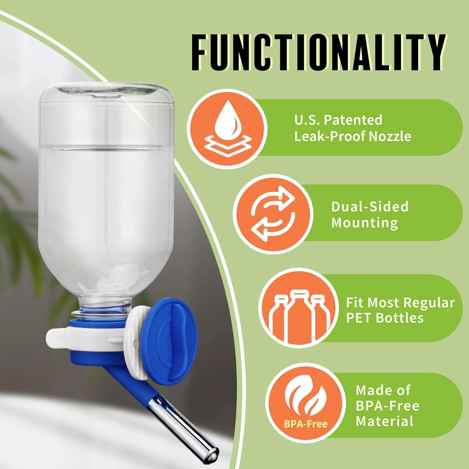 - 🐾 User-friendly Screw-on Bracket: Simple and Easy Installation. You Can Easily Snap the Water Bottle On or Off for Cleaning and Refilling Water.