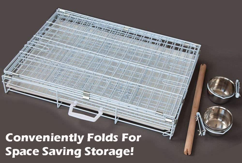 Durable Easy Portable Metal Travel or Veterinary Collapsable Parrot Bird Carrier Beaks Proof Cage with Stainless Steel Feeder Bowls Natural Wooden Perch Stand