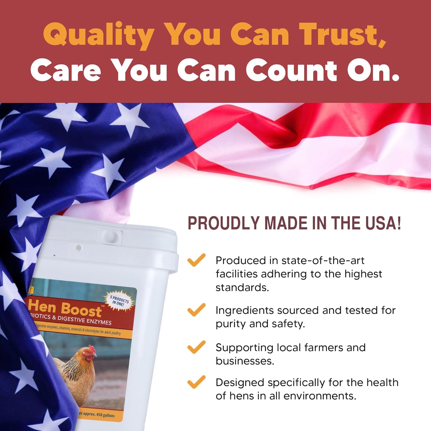 - Chicken Supplements - Packed with the essential nutrients your hens need to thrive, these vitamins for chickens support their overall wellness. With a unique formula that combines the benefits of five products in one bag, it's easy to keep your flock happy.