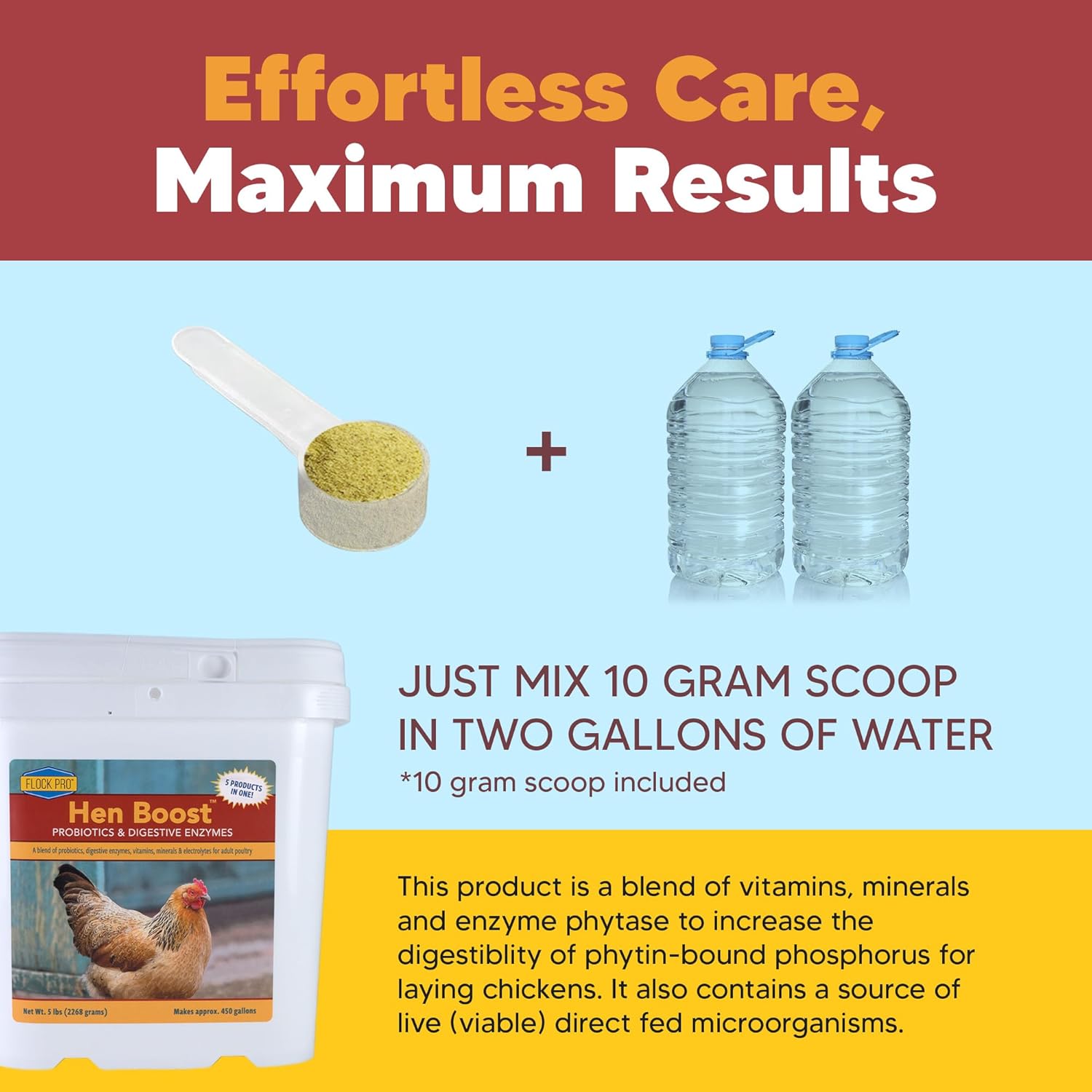 Flock PRO Hen Boost - Digestive Supplement for Hens | Chicken Vitamins and Supplements | Probiotics, Digestive Enzymes, Electrolytes for Adult Poultry-5lb