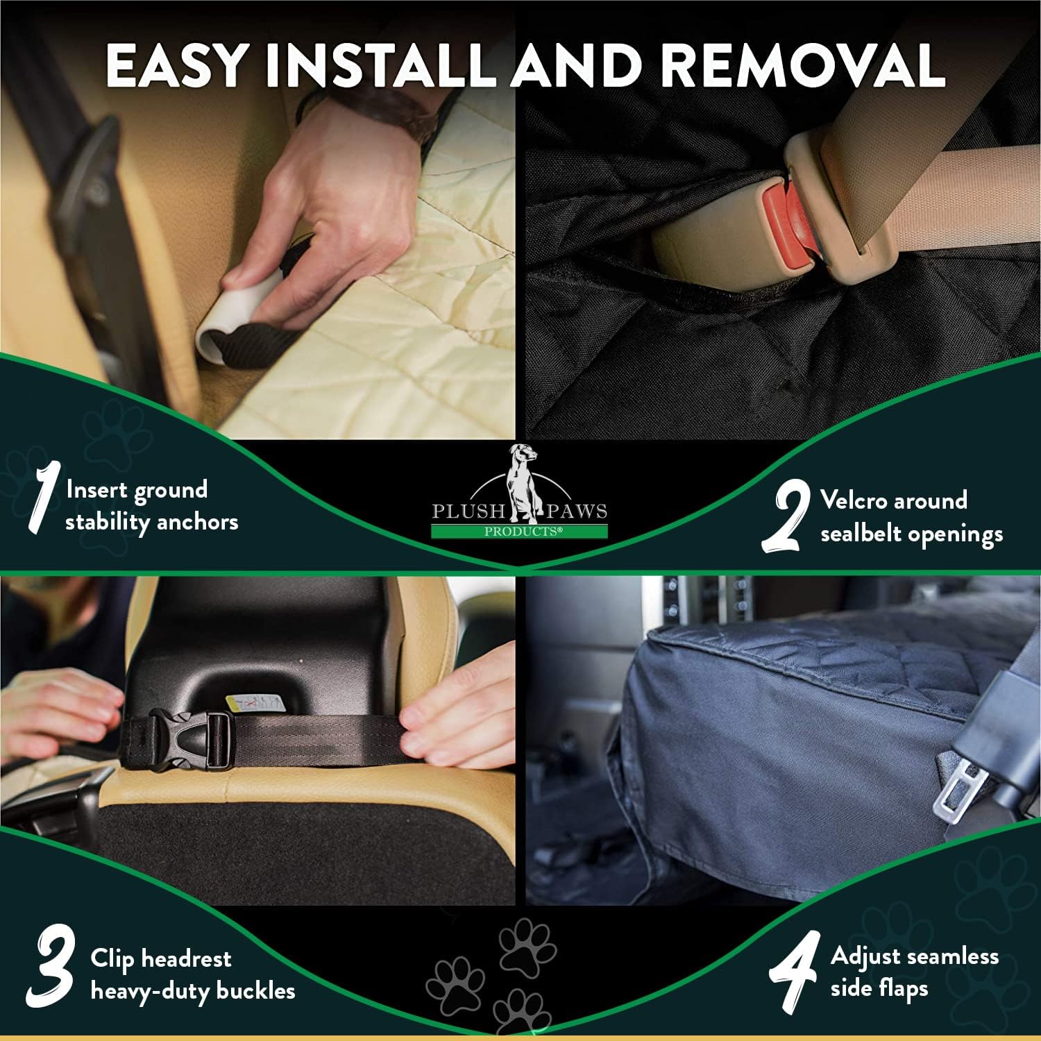 Plush Paws Products Premium Bucket Car Seat Protector | Diamond Stitching | Washable & Waterproof Front Seat Dog Cover Car, Truck, & SUV | Nonslip, Tear Resistant Pet Passenger Seat Cover | Black