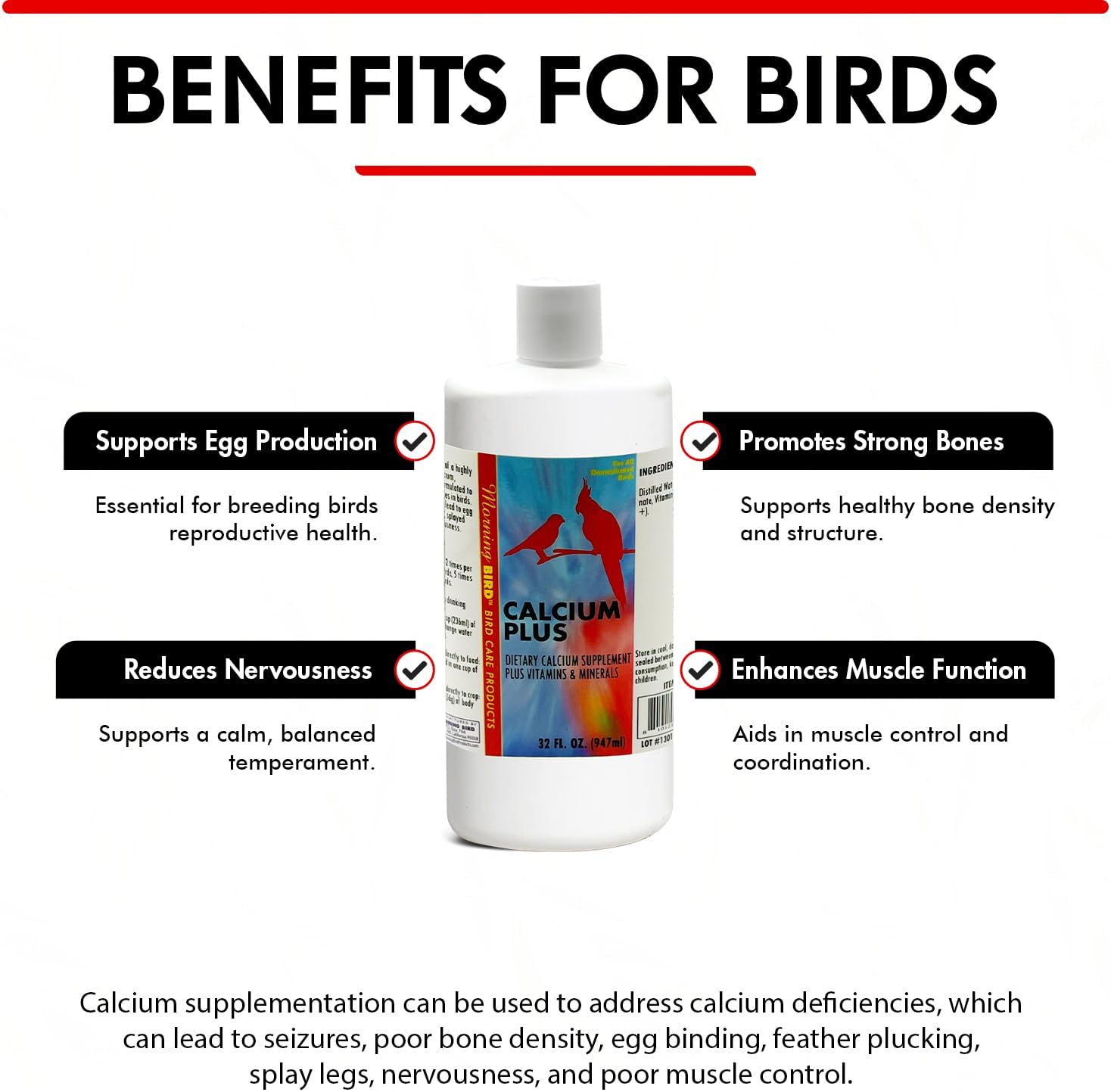 - Supports Vital Functions: Morning Bird’s Calcium Plus Liquid supports healthy egg laying, feather health, neurological development and promotes better health for birds at all life stages.