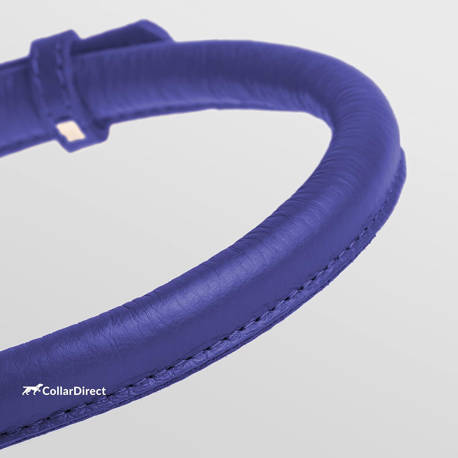 CollarDirect Rolled Leather Dog Collar, Soft Padded Round Puppy Collar, Handmade Genuine Leather Collar Dog Small Large Cat Collars 13 Colors (15-19 Inch, Purple Textured)