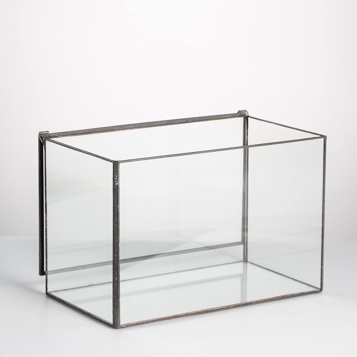 NCYP Small Rectangle Glass Terrarium Planter with Lid, 6.7 x 4 x 4.8 Inches Clear Black Geometric Flower Pot Box for Succulents Air Plant Fern, Tabletop Decoration (No Plants)
