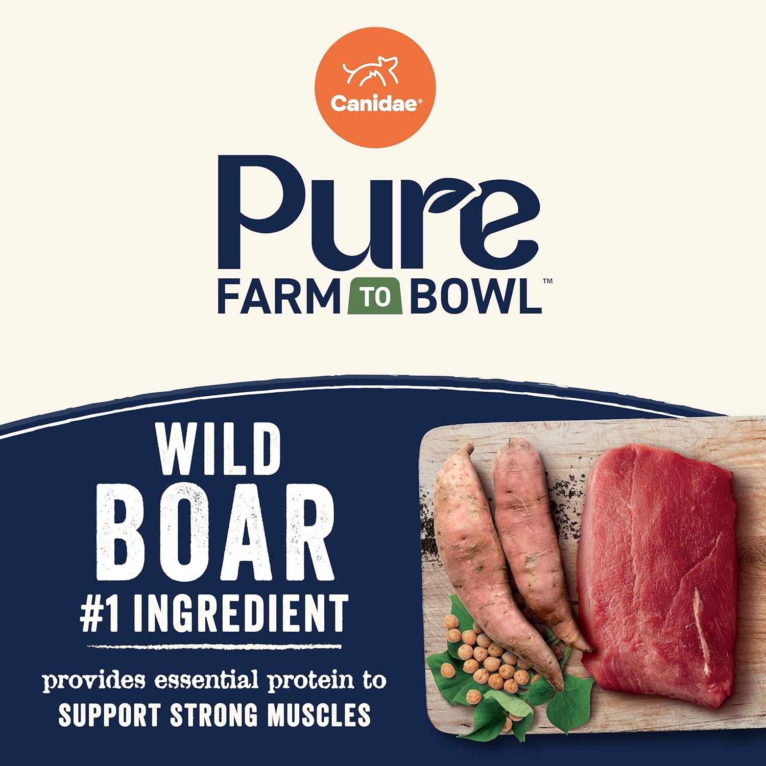 Canidae Pure Farm to Bowl Wild Boar & Garbanzo Bean, Grain-Free Dry Dog Food, Adult, 22lb