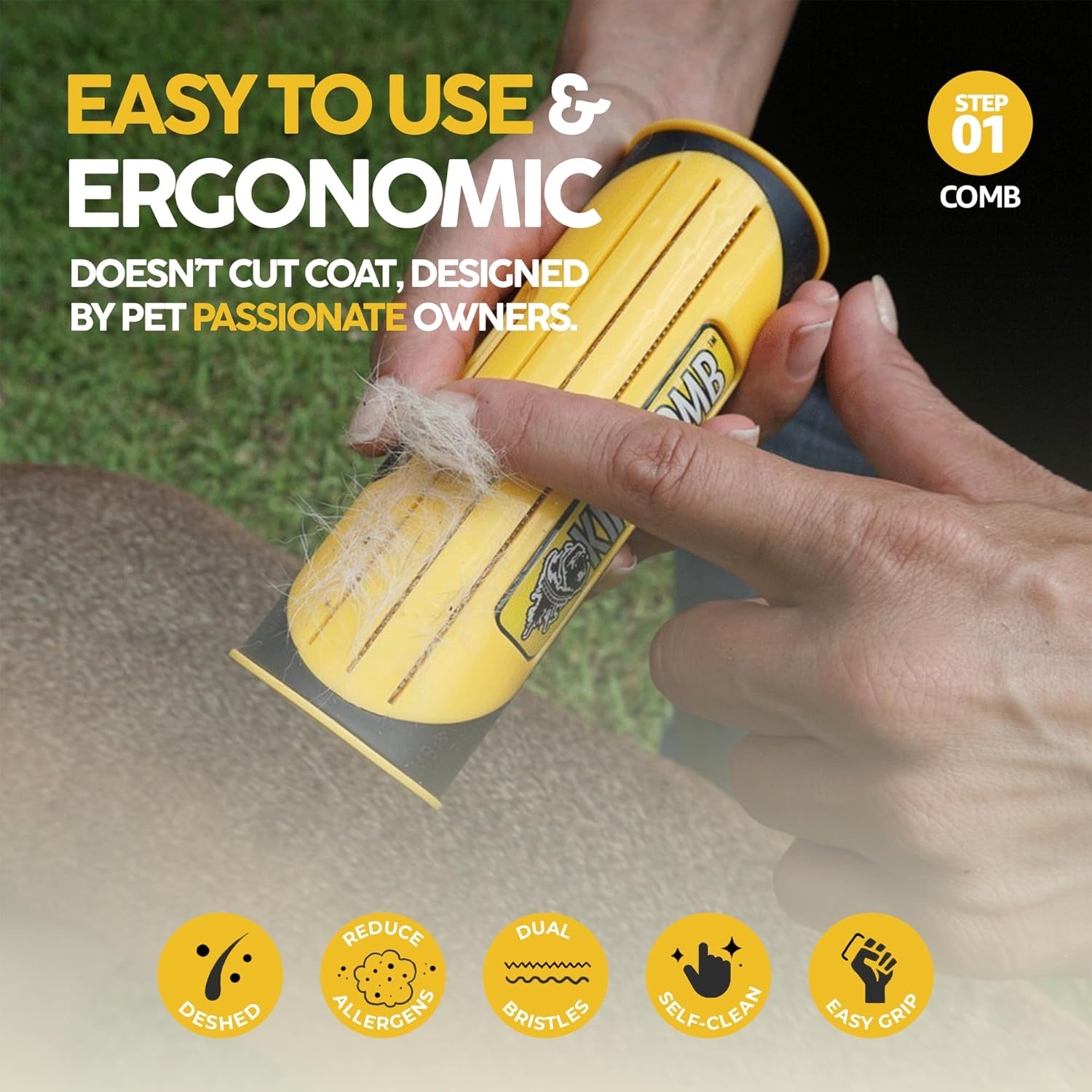 King Kanine Pet Grooming Brush, Self Cleaning Deshedding | Multi-Use Tool for Dogs, Cats & Horses for All Life Stages | Brush Pet for Grooming and Loose Hair | Perfect for Medium & Large Coats