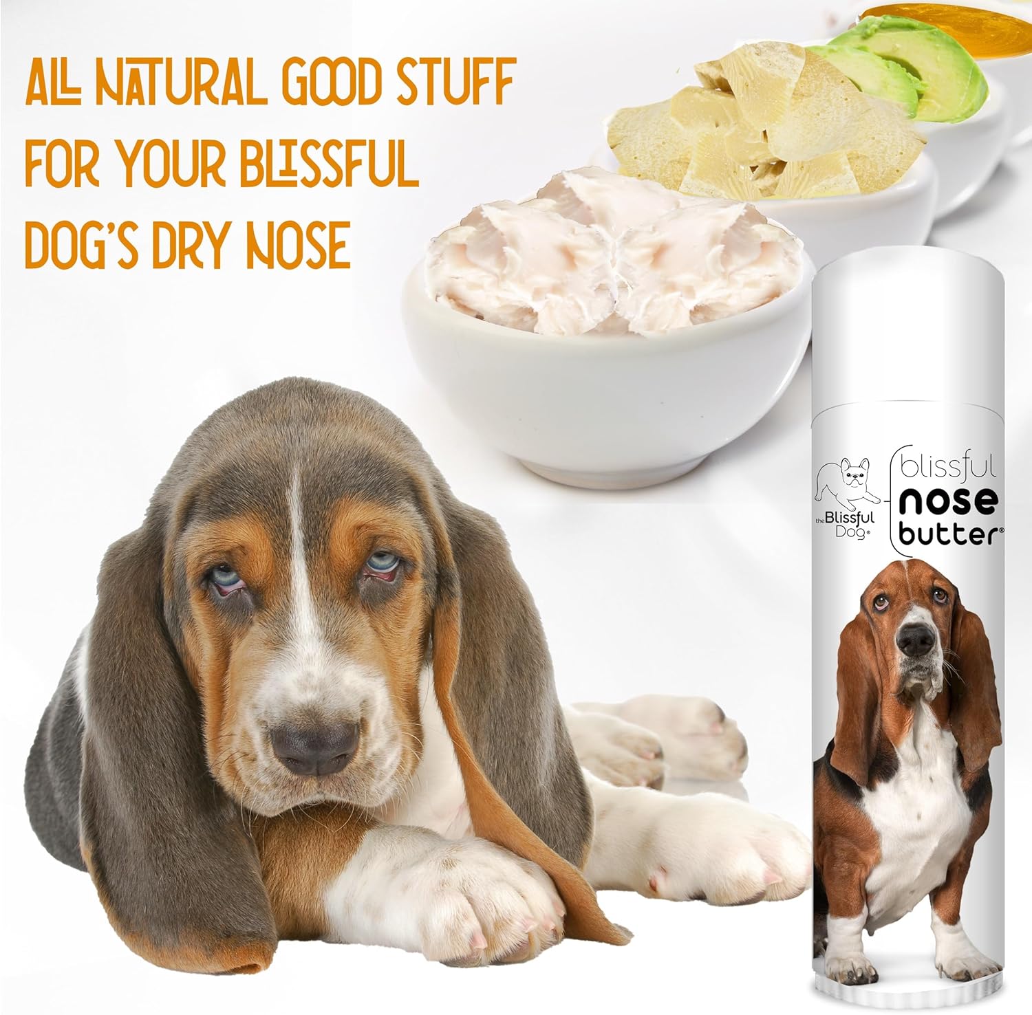 The Blissful Dog Basset Hound Nose Butter for Dry, Cracked Skin, Lick-Safe Dog Nose Balm with Moisturizing Shea Butter, Almond, Olive, and Essential Oils, Pet Supplies, Uncented, 0.50 oz.