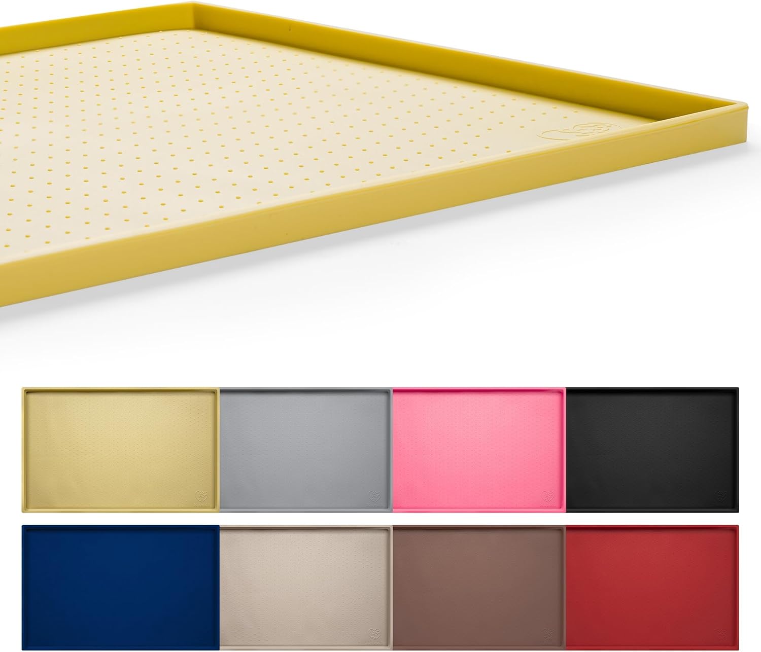 Hubulk Dog Feeding Mat,100% Waterproof Food Grade Silicone Pet Food and Water Bowl Placemat,Dishwasher, High Raised Edge to Prevent Spills,Nonslip Tray to Stop Messes on Floor (19"x12"x0.5", Yellow)