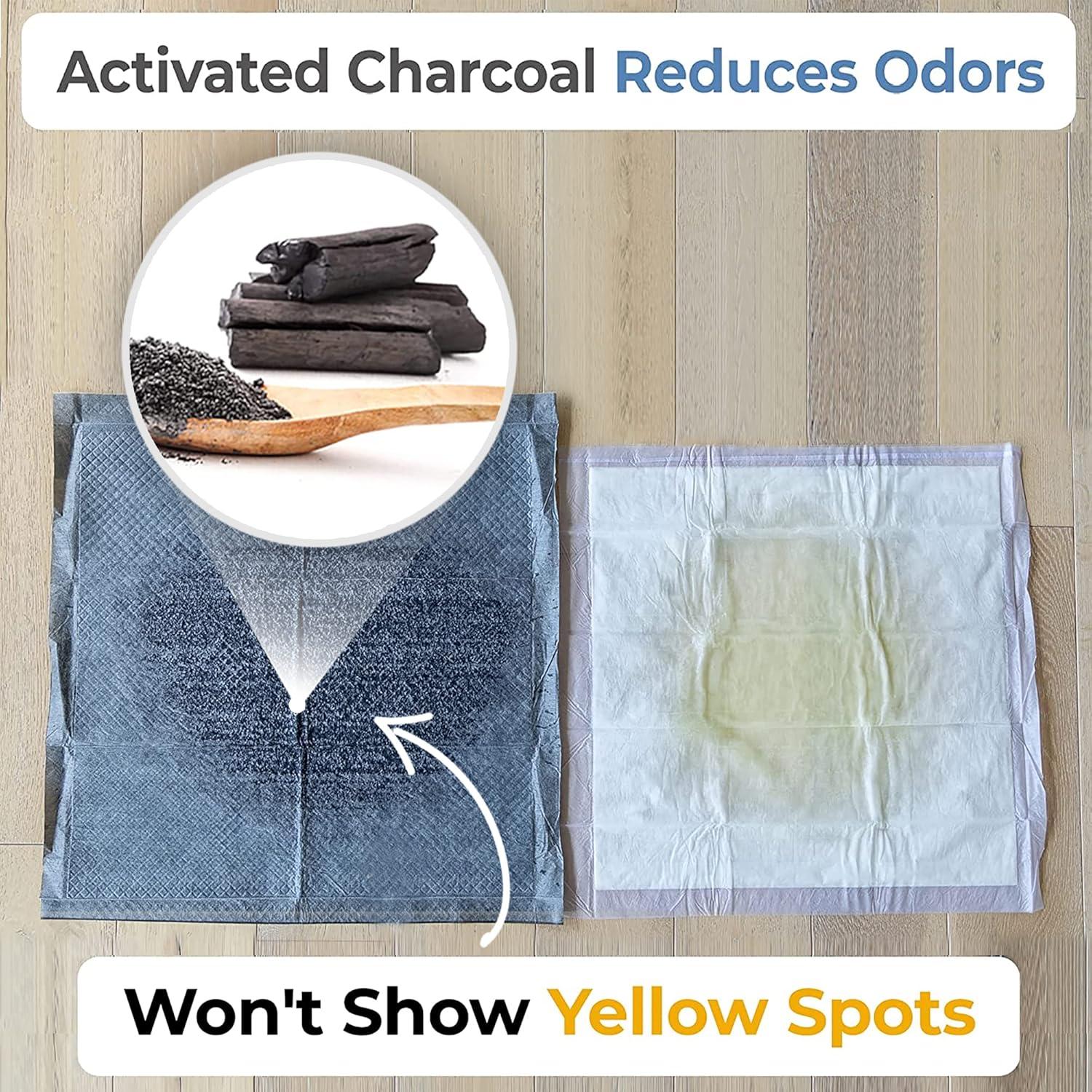 - Odor-Eliminating Charcoal Puppy Pads: Activated charcoal traps & neutralizes dog potty smell. Charcoal in our pee pads for dogs is natural, making our pet pee pads safe for puppies, cats & other small pets. Use them as dog training pads indoors, without worrying about the smell. Ideal dog housebreaking supplies.