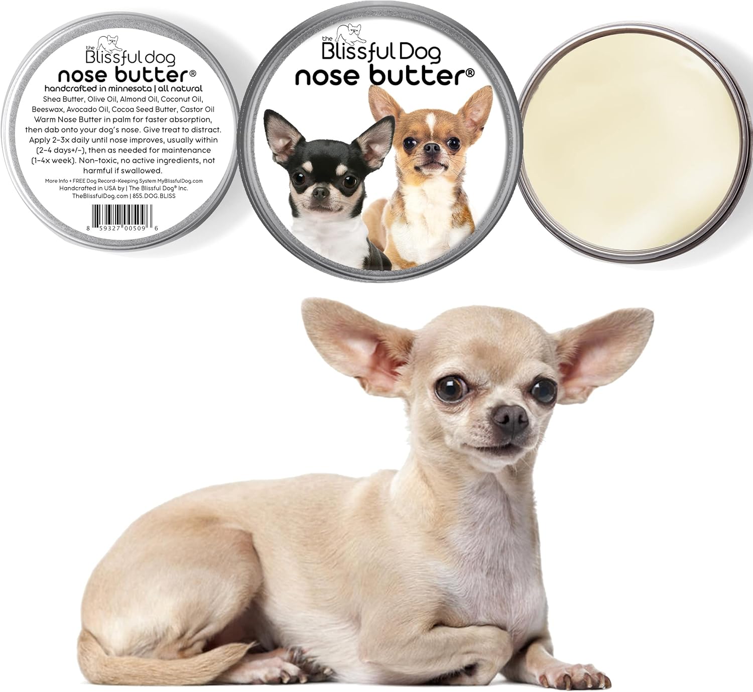 The Blissful Dog Smooth Coat Chihuahua Nose Butter for Dry, Cracked Skin, Lick-Safe Dog Nose Balm with Moisturizing Shea Butter, Almond, Olive, and Essential Oils, Pet Supplies, Uncented, 1 oz.