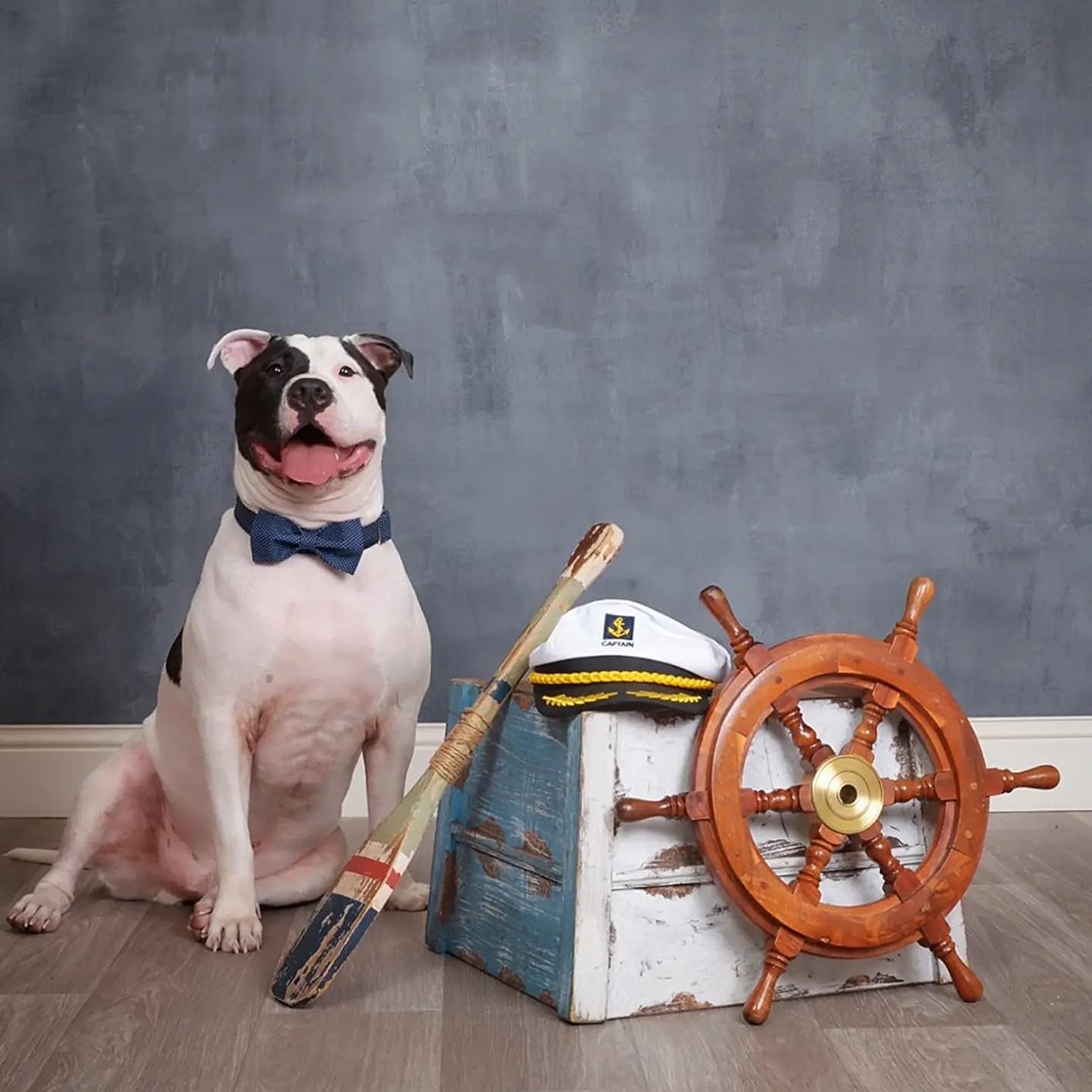 Lionet Paws Boy Dog Collar with Bowtie, Comfortable Adjustable Cute Navy Blue Bow Tie Collar for Male Dogs Gift, Small, Neck 10-16 inches