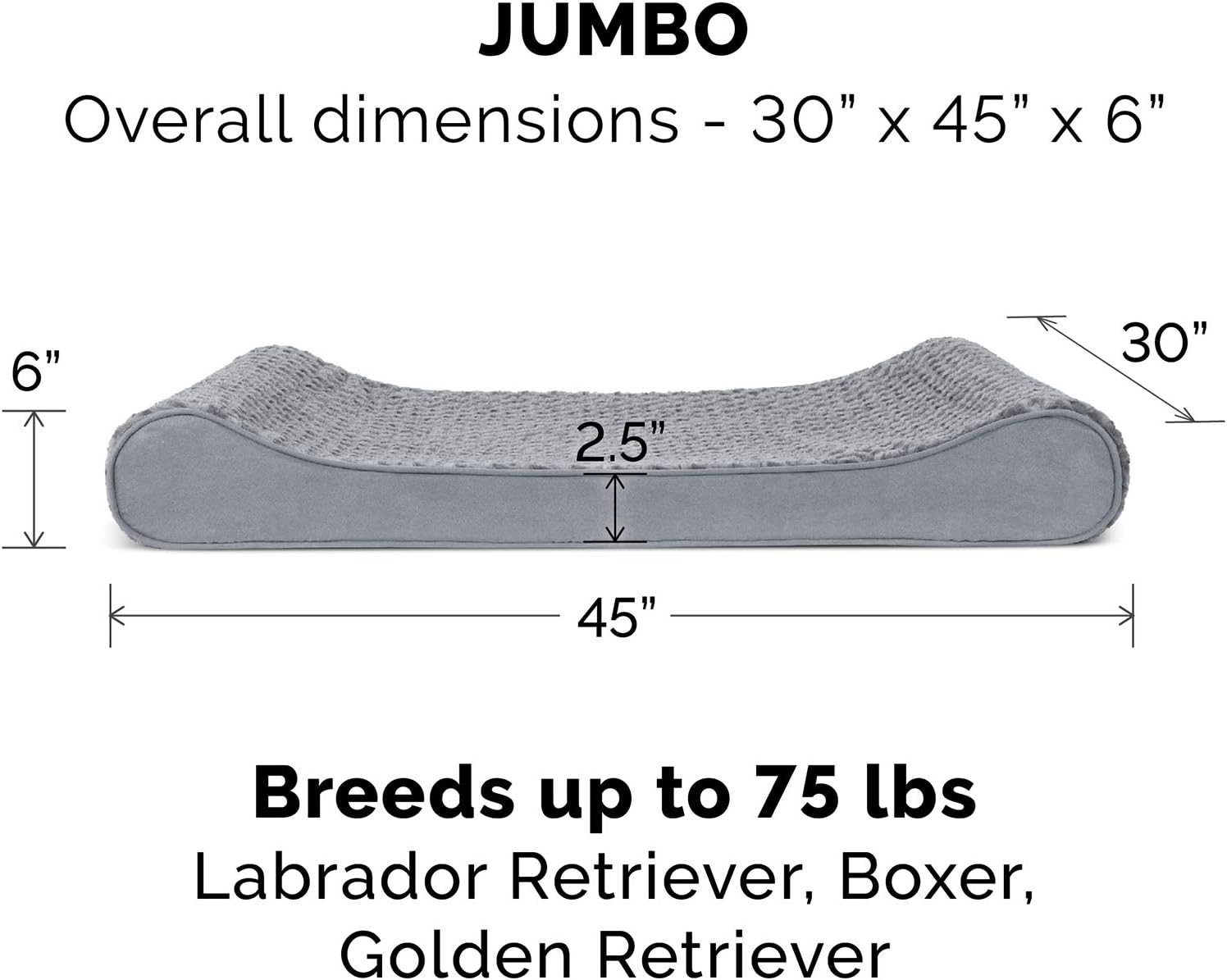 Furhaven Orthopedic Dog Bed for Large Dogs w/ Removable Washable Cover, For Dogs Up to 75 lbs - Ultra Plush Faux Fur & Suede Luxe Lounger Contour Mattress - Gray, Jumbo/XL