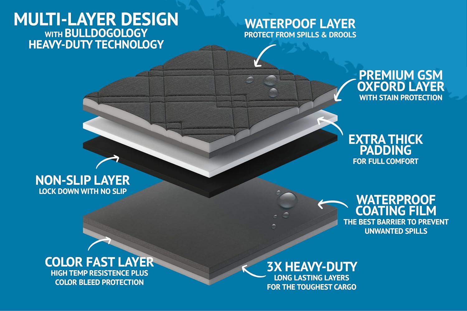 - WATERPROOF LAYERS: Ensure pet bathroom accidents or any spilled liquids from staining and absorbing into your seats. For a quick cleanup, you can wipe the cover down with a damp cloth, or throw it in the washing machine for bigger messes.
