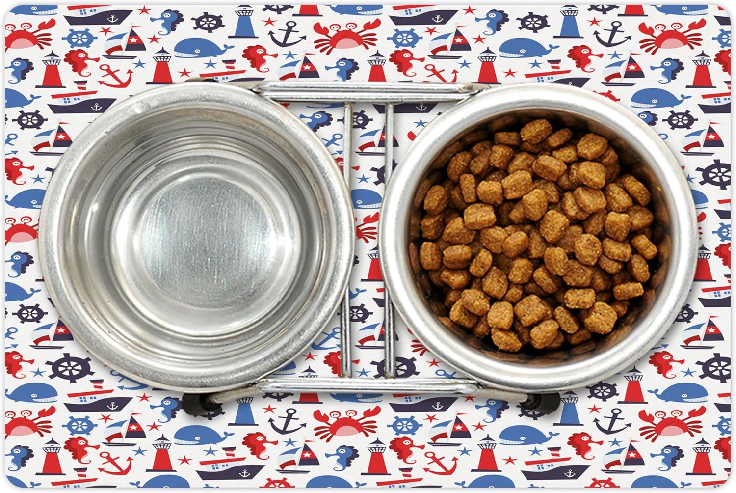 - Features - Fun prints and long-lasting colors. Find any theme and color you want to match your room decor or your petâs personality. This pet feeding mat can even feature your cat's or dogâs favorite item or design, adding a cheerful touch to your petâs feeding area.