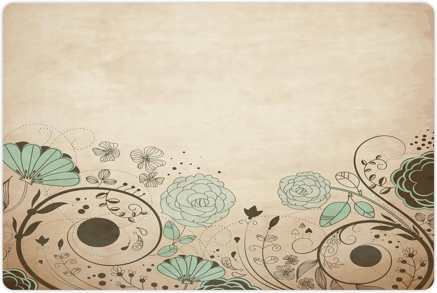 Lunarable Abstract Pet Mat for Food and Water, Old Dated Vintage Retro Antique Image with Floral Swirls Art Print, Non-Slip Rubber Mat for Dogs and Cats, 18" X 12", Brown Turquoise