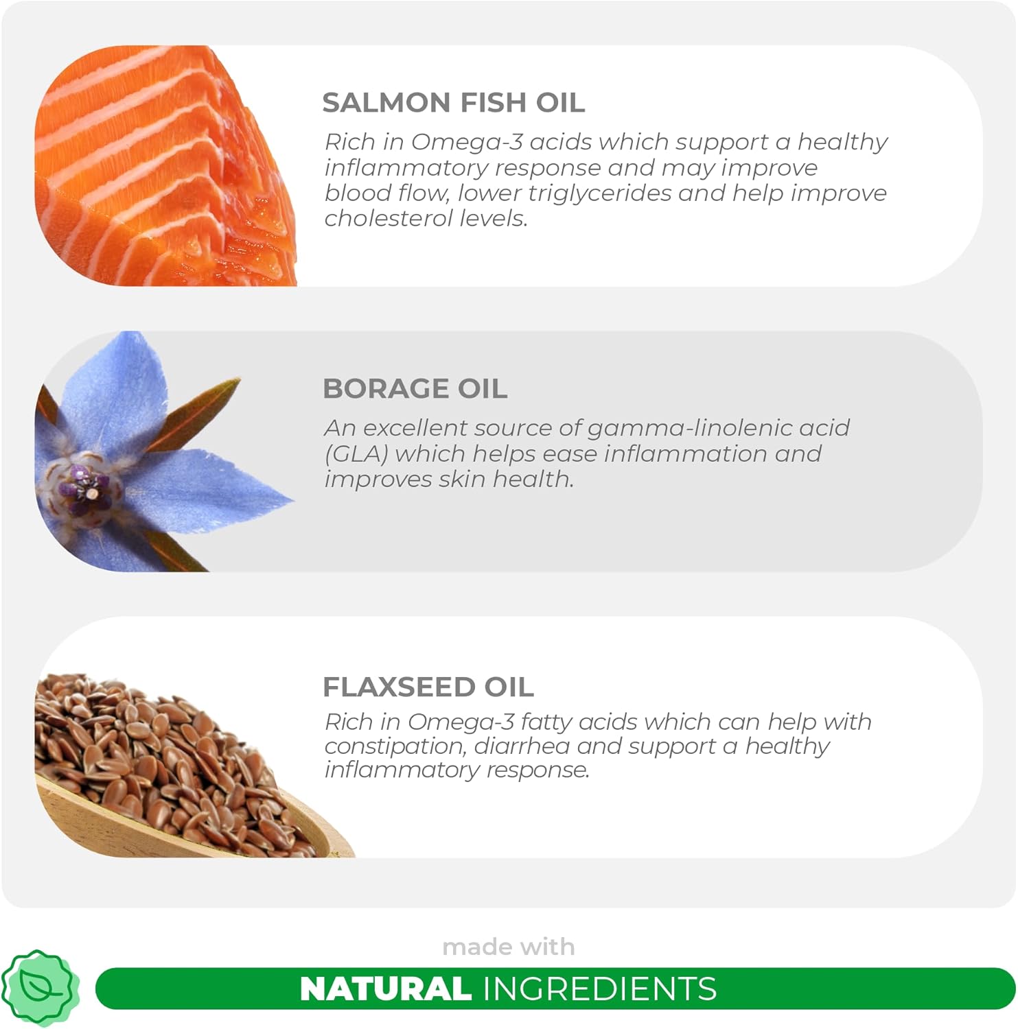- Immune System - Our natural formula contains Vitamin E which is a powerful antioxidant that supports and enhances your dogâs immune system while also having Borage Oil which has anti-inflammatory properties.