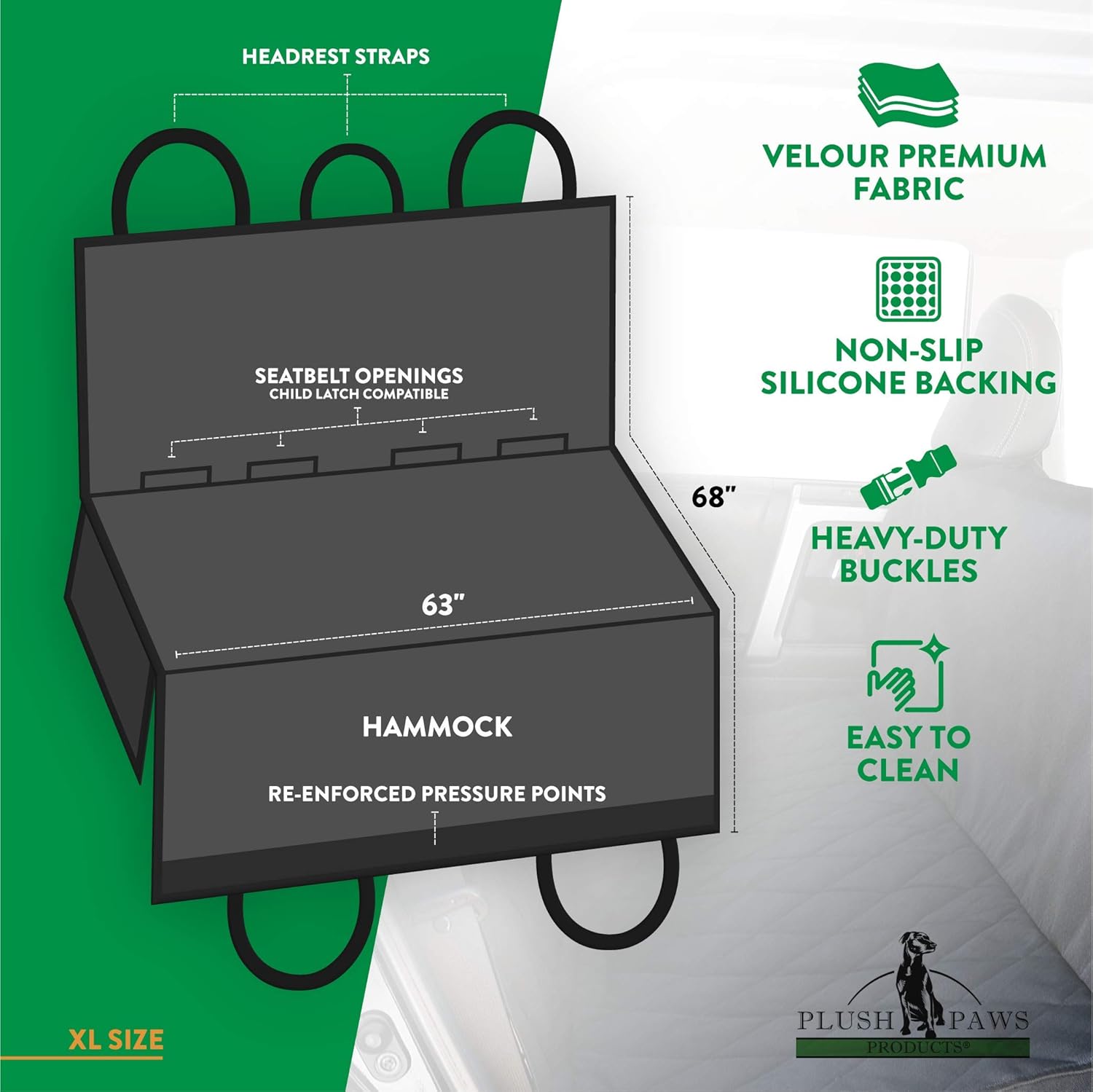 Plush Paws Products Velvet Rear Car Seat Protector w/Hammock | Washable & Waterproof Back Seat Dog Cover for Car, Truck, & SUV | Nonslip, Tear Resistant Pet Seat Cover | X-Large Chocolate