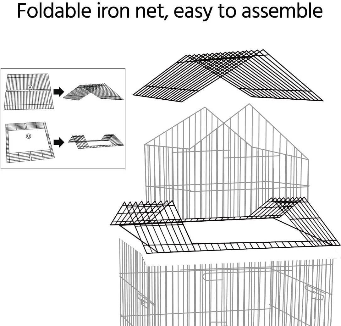 - Slide-out tray: The slide-out litter tray makes cleaning a breeze. The bottom grate above the tray prevents birds from walking directly on the droppings, ensuring your petsâ health and the tidiness of the cage