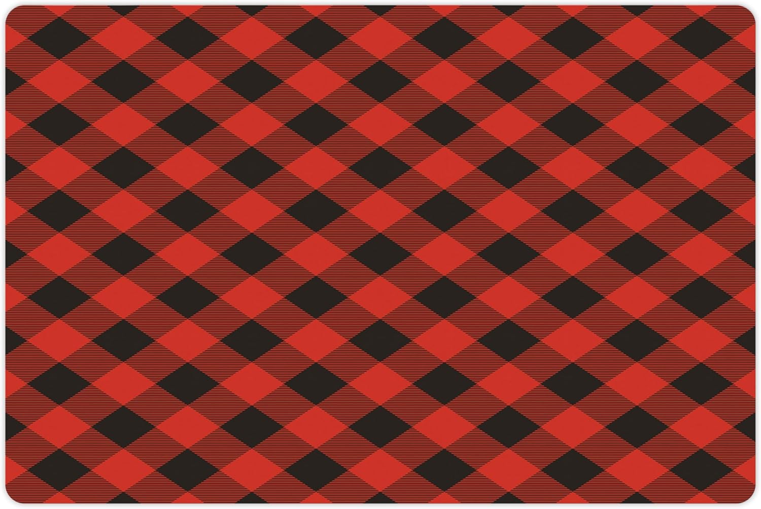 Lunarable Buffalo Plaid Pet Mat for Food and Water, Grid Style Illustration with Horizontal Lines Pattern Diamond, Non-Slip Rubber Mat for Dogs and Cats, 18" X 12", Orange Charcoal