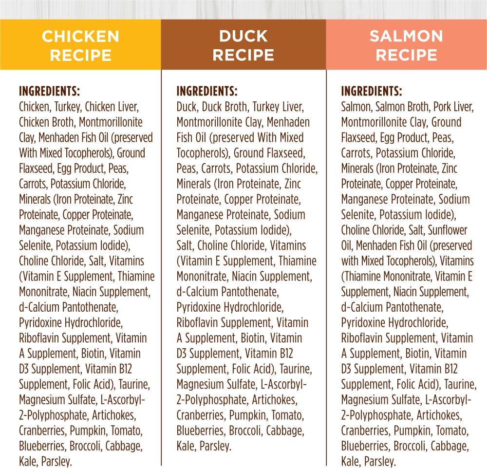 - HIGH PROTEIN CAT FOOD: Crafted with 95% real meat and organs and 5% wholesome ingredients, this grain free cat food wet recipe helps maintain strong, lean muscles. Includes cage-free chicken, duck, and wild-caught salmon for a truly balanced meal.