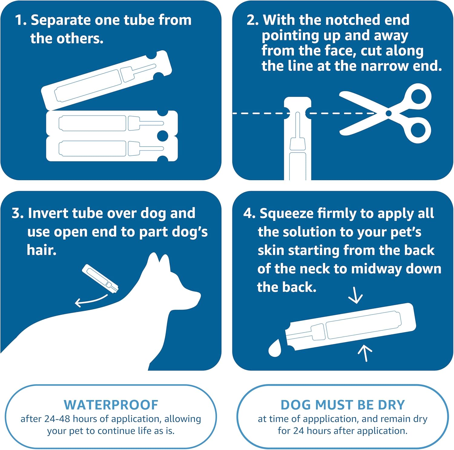 - FAST-ACTING RELIEF: Amazon Basics Flea and Tick Treatment for dogs starts eliminating fleas and ticks in just 24 hours. Waterproof within 24 hours as well