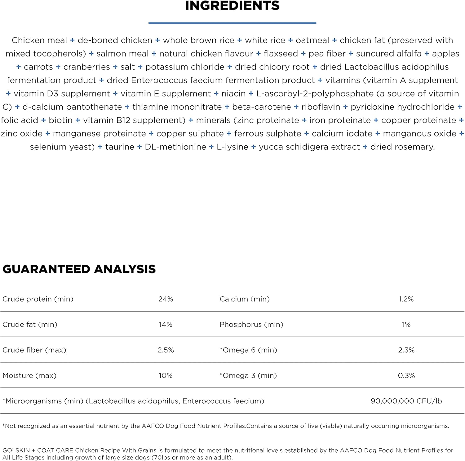 Go! Solutions Skin + Coat Care, Dry Dog Food, Chicken Recipe with Grains, 12 lb Bag