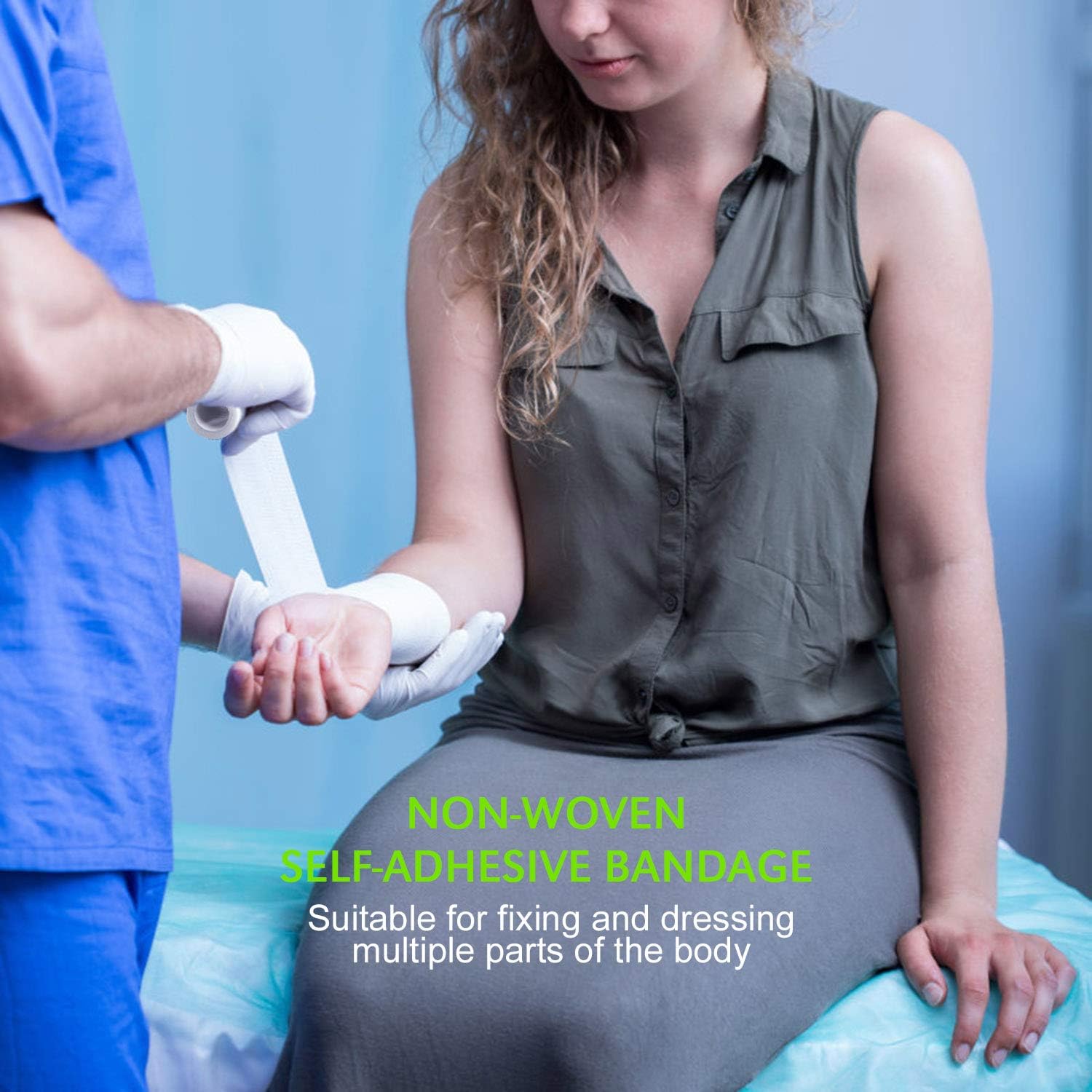 - 【Size & Package】-- Each roll bandage size is approximately 4"x5yd / 10cmx4.5m, which is long enough to wrap any body part you want. Pack of 12 rolll white self adhesive bandage, each roll equips with poly bag individually, easy to carry wherever you want.