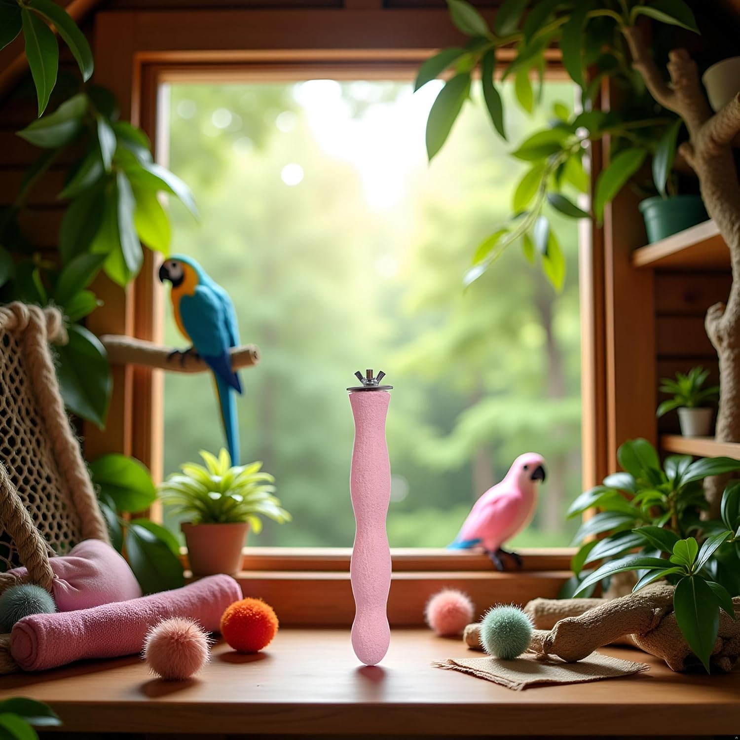 - Reduce Loneliness---The pink color appearance can attract the attention of birds and give the birds a good activity playing space. Decompression, prevention of parrots suffering from depression or screaming.