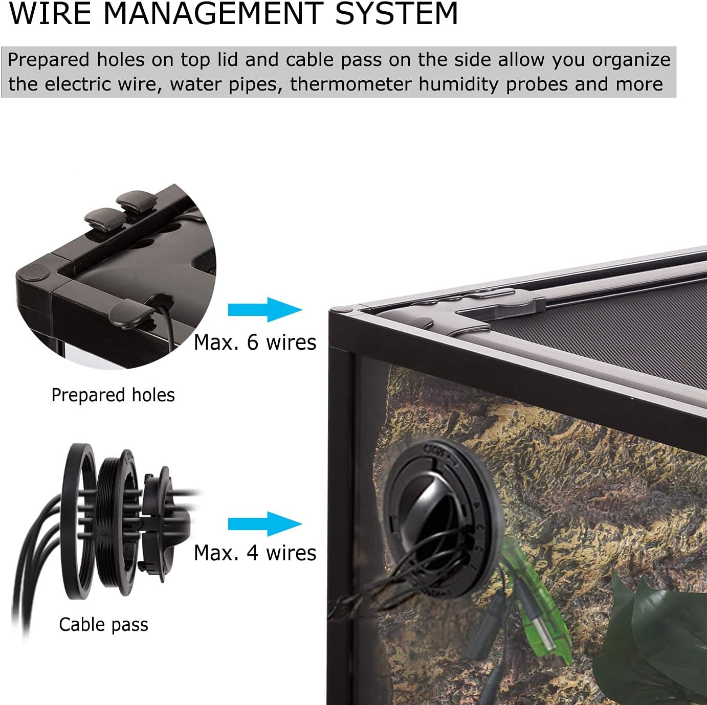 - ăEASY MAINTENANCE & MORE UVB PENETRATIONăFront sliding opening door allows easy access for maintenance and feeding your pets and larger-woven screen top ventilation for more UVB and infrared penetration, the top screen is completely removable for easy access while decorating or cleaning, which also allows you to create realistic animal habitats for your reptile pets easily.