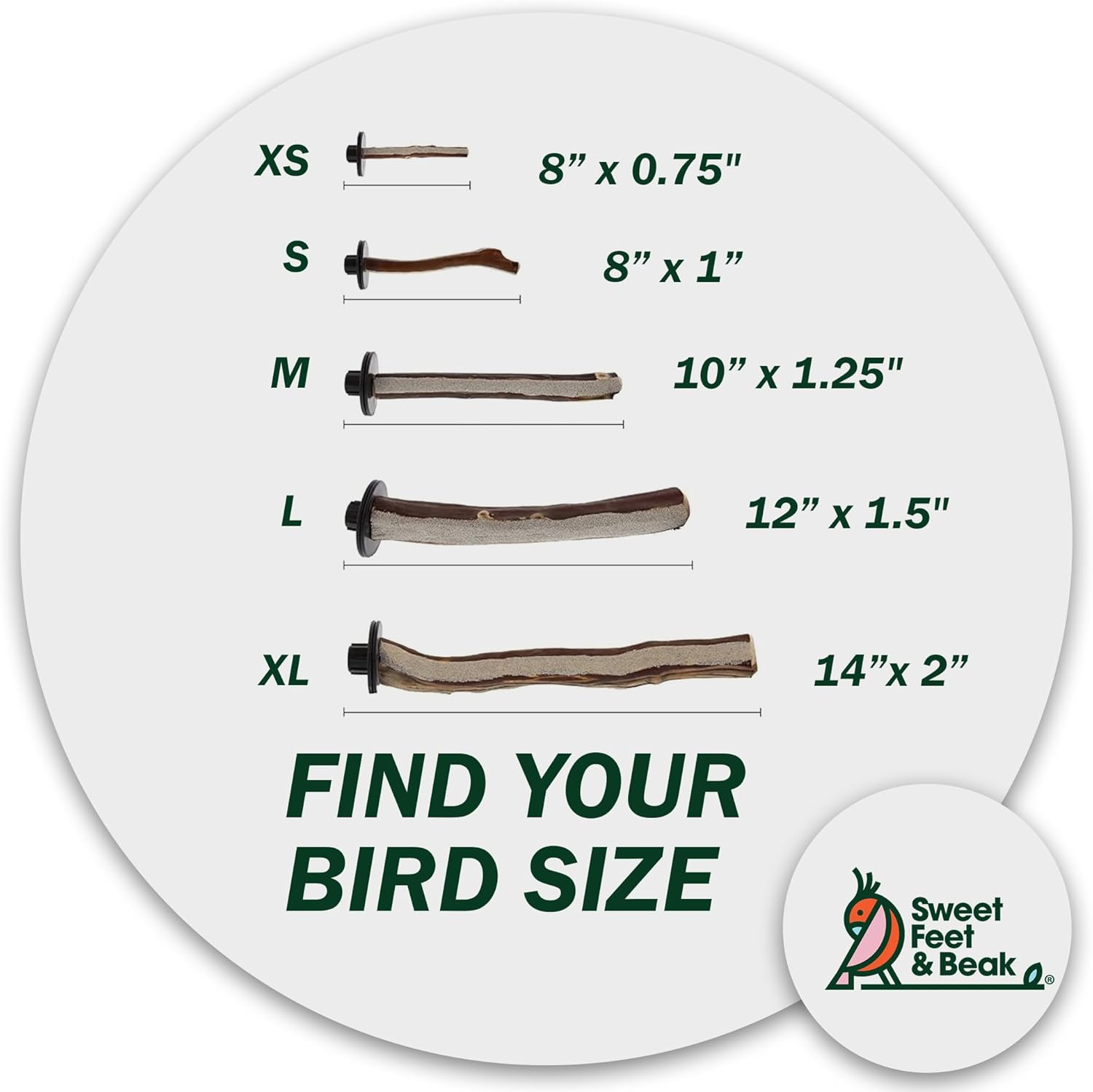 - SAFE AND NON-TOXIC - Now all natural with no colors or dyes. Our parrot perch is safer than a sanded surface bird cage perch that can hurt your birdâs tender feet pads; position the pedicure perch slightly above your normal bird cage perches to ensure optimum usage by your feathered friend.