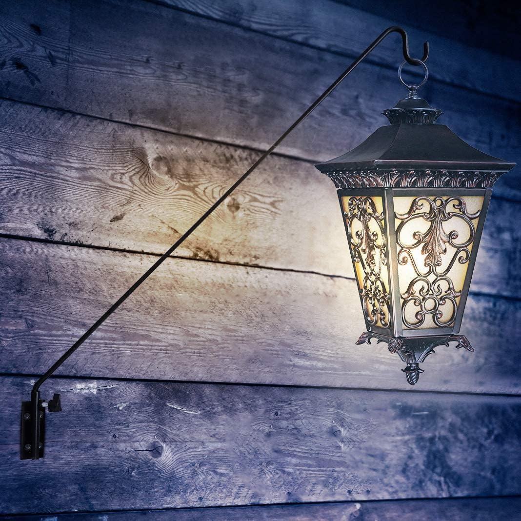 - Rust Resistant and Sturdy Arm: Wall mount bracket that locks into different angles, the long and sturdy arm of this bracket is ideal for all bird feeders, hummingbird feeders, hanging plants, birdbaths, lanterns, and other decorative items. The durable metal construction and weather-resistant finish of the powder-coating will maintain its Black color and quality season after season.