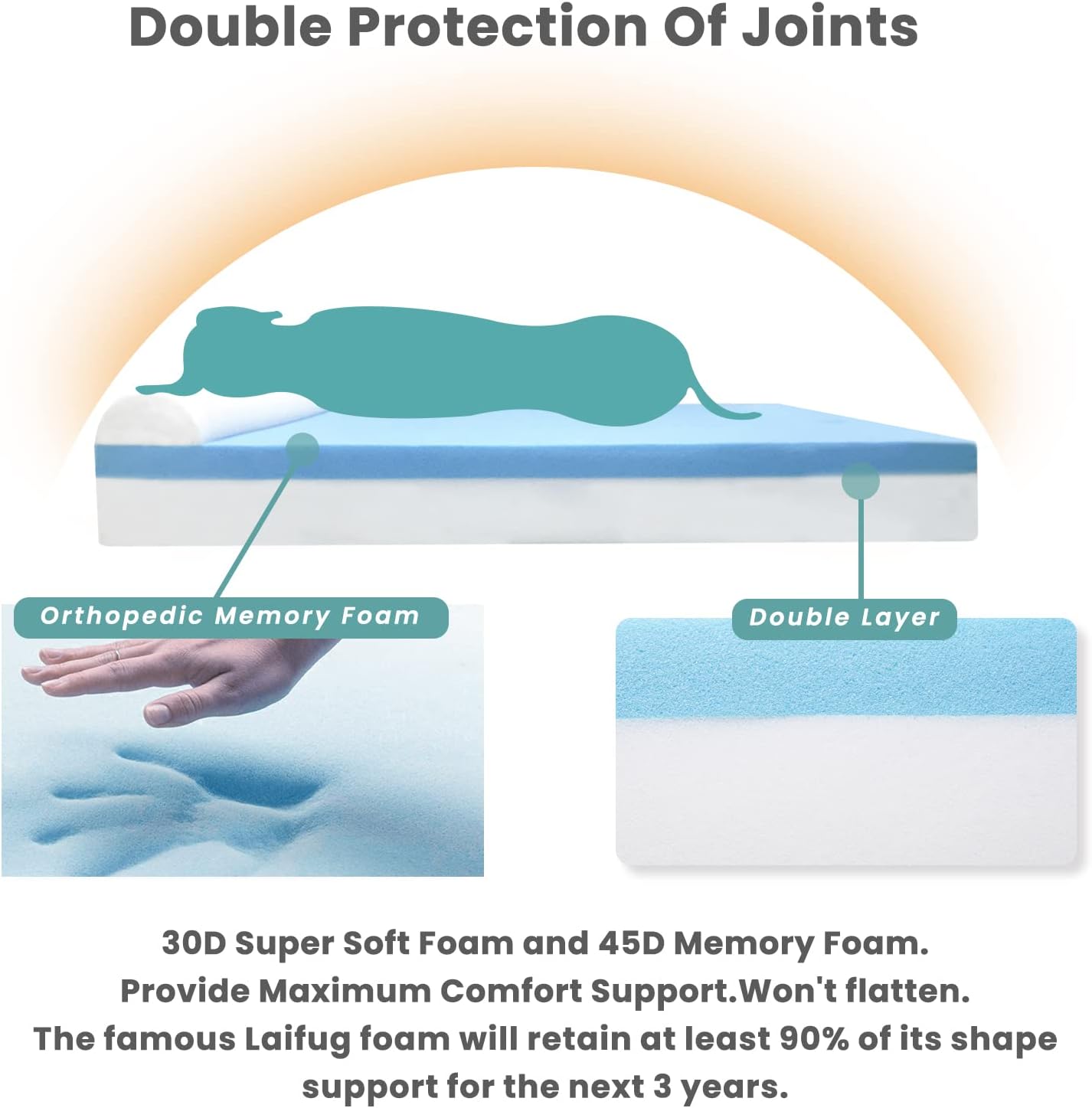 Laifug Orthopedic Memory Foam Dog Bed with Durable Water Proof Liner and Removable Washable Cover (Large (46"x28"x8"), Denim Blue)