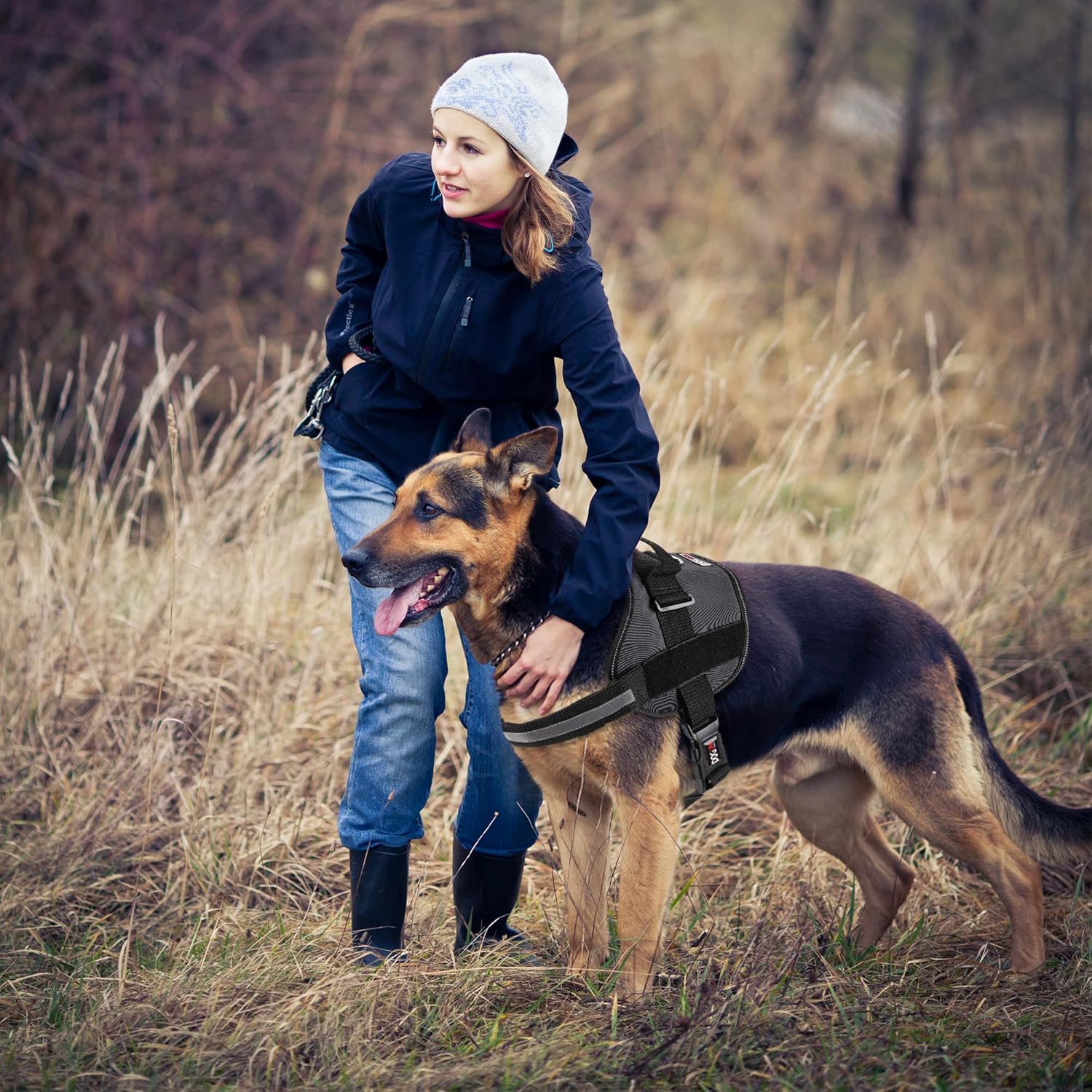 - ADJUST THE SIZE TO YOUR PETâS NEEDS Our Service Dog harness vest is fully adjustable so as to ensure a comfy yet snug fit. Forget about harnesses coming loose. Forget about seams and stitching falling apart. The quick release belly buckle facilitates use to the fullest and the top handle is great for added control and assistance.