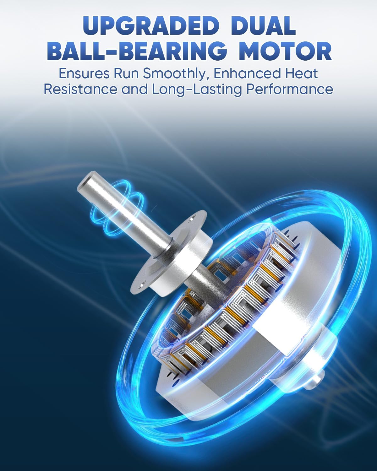 - Superior Airflow Performance. This high-velocity fan delivers up to 7497 CFM on high speed with 2-speed settings. Featuring 90° oscillation and 60° vertical tilt, it ensures efficient cooling and wide air circulation for large spaces.