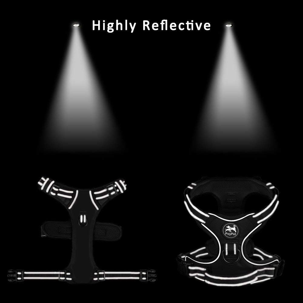 PoyPet No Pull Dog Harness, Reflective Comfortable Vest Harness with Front & Back 2 Leash Attachments and Easy Control Handle Adjustable Soft Padded Pet Vest for Small Medium Large Dogs (Mint Blue,M)