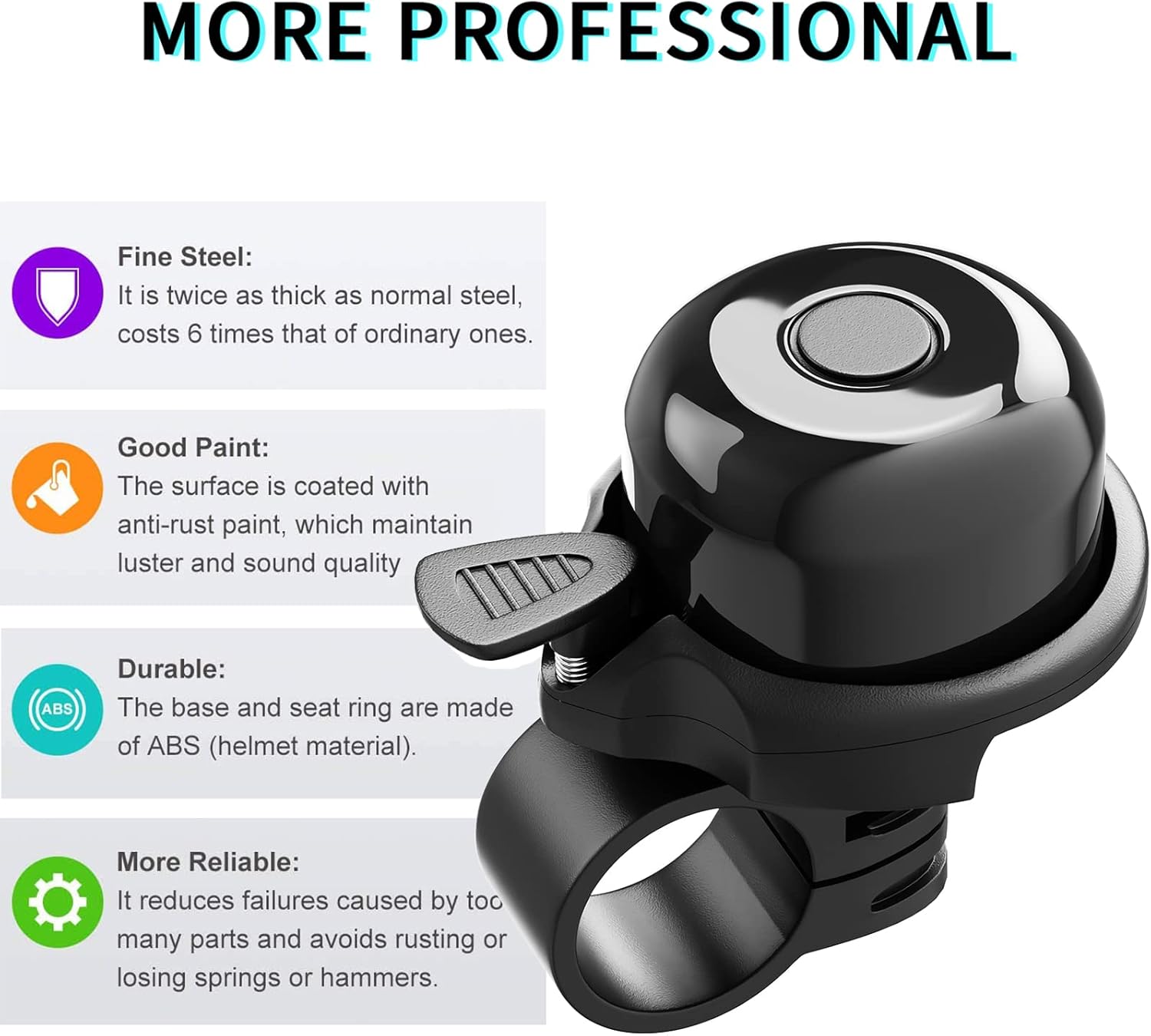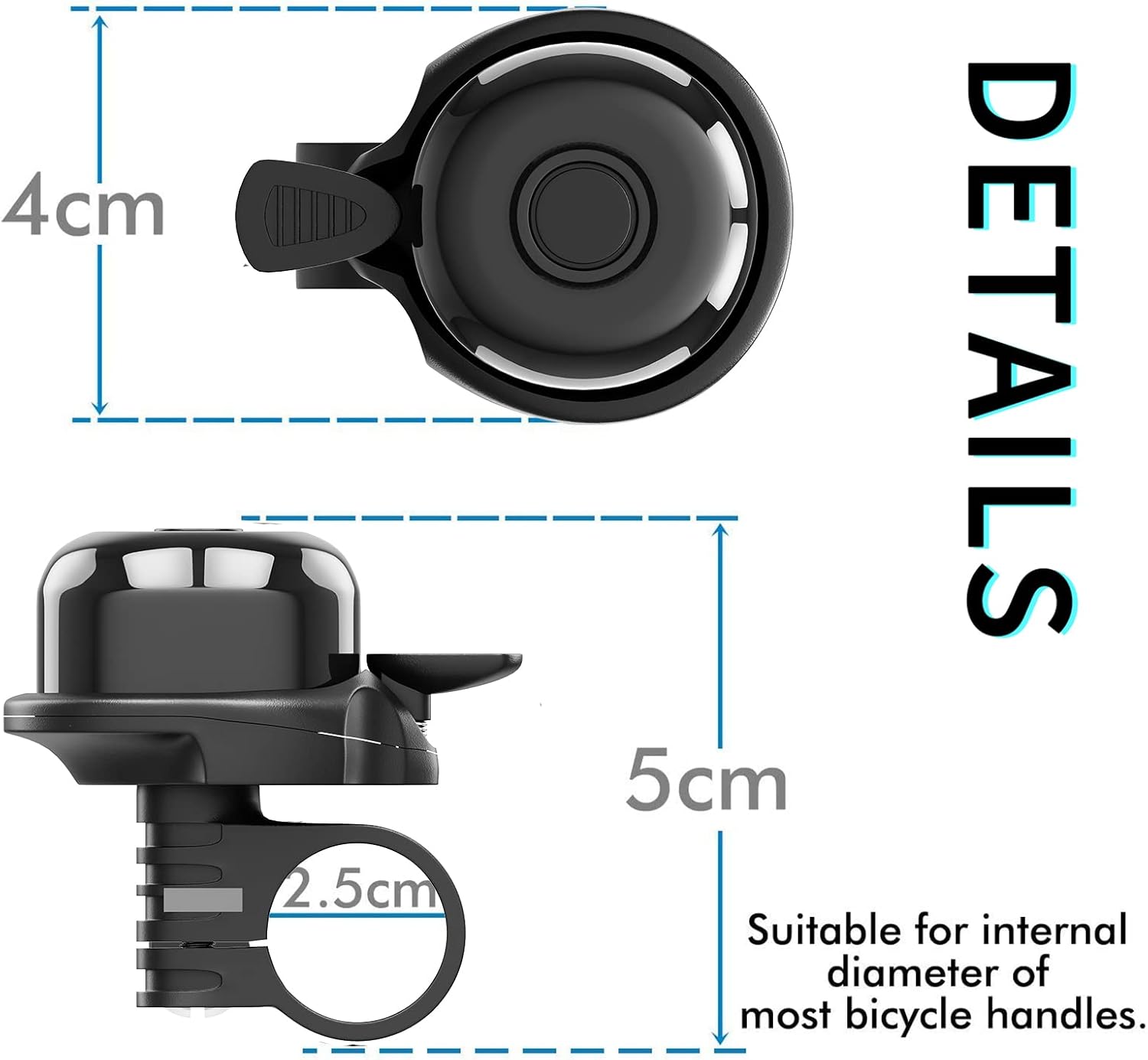 - CRISP RINGTONE: The aluminum bike bells with fashion outlook delivers a crisp ringtone is loud enough to alert the passerby and cars making the riding much enjoyable and safer. The classic bike ring is one of important bike accessories for adults and kids for mountain bike, cruise ride or road bike riding.