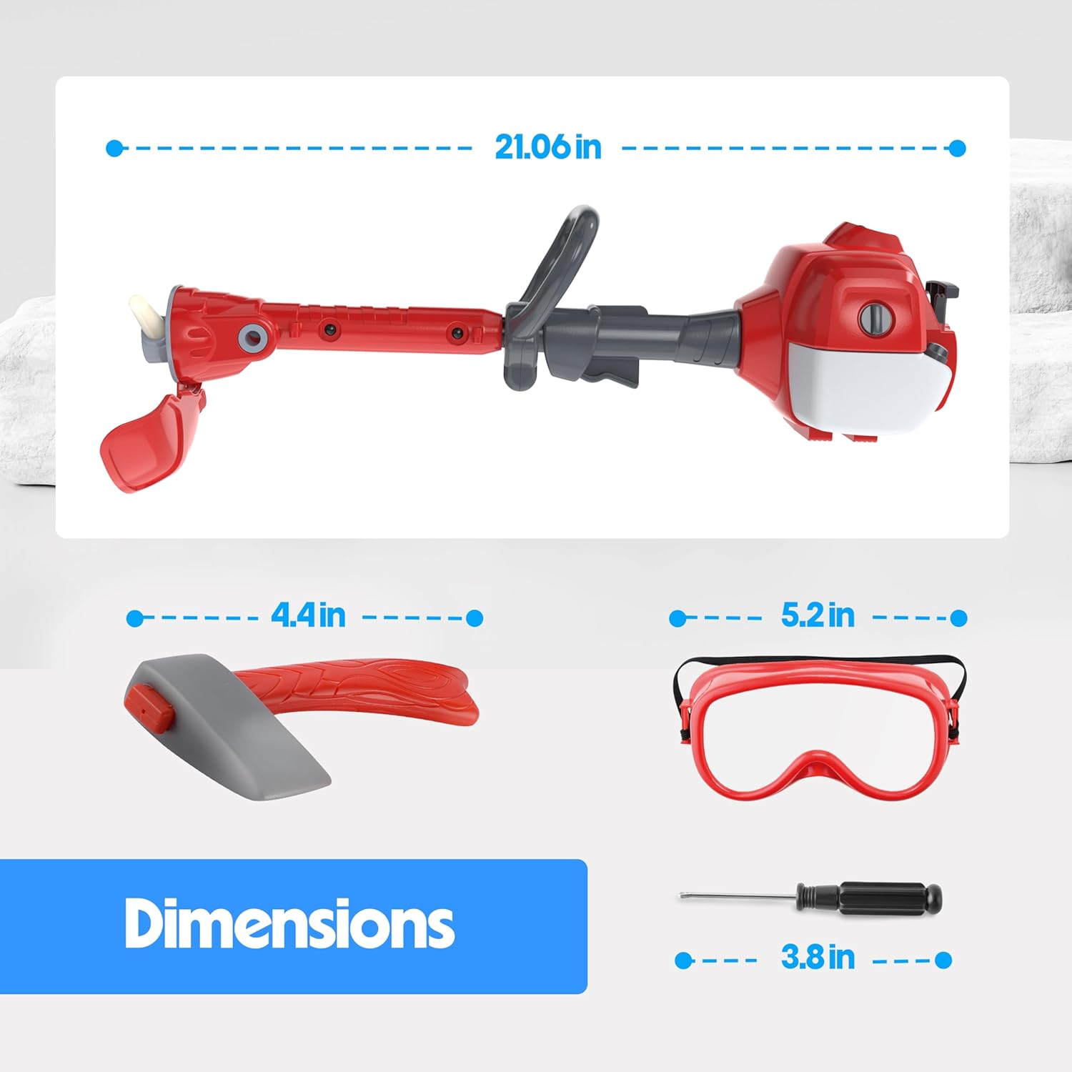 - 𝗚𝗼𝗼𝗱 𝗗𝗲𝘀𝗶𝗴𝗻: Our toy trimmer resembles and functions like a real garden trimmer with a green LED light and realistic sound, sparking imaginative play for kids