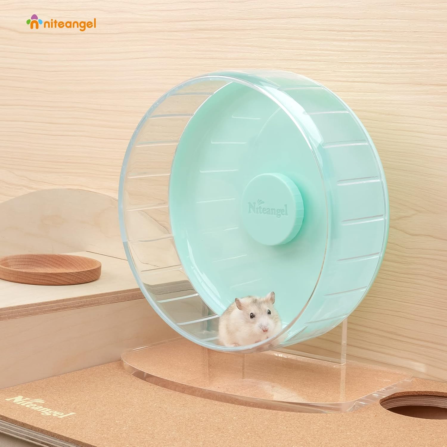 - Super Silent 8.2-Inch Hamster Wheel - Niteangel Silent Spinner Hamster wheel designed with Dual Ball bearings, it brings your little hamster endless running happiness, also brings you a quiet night even if your hamster on the race track to run & hamster wheel is spinning