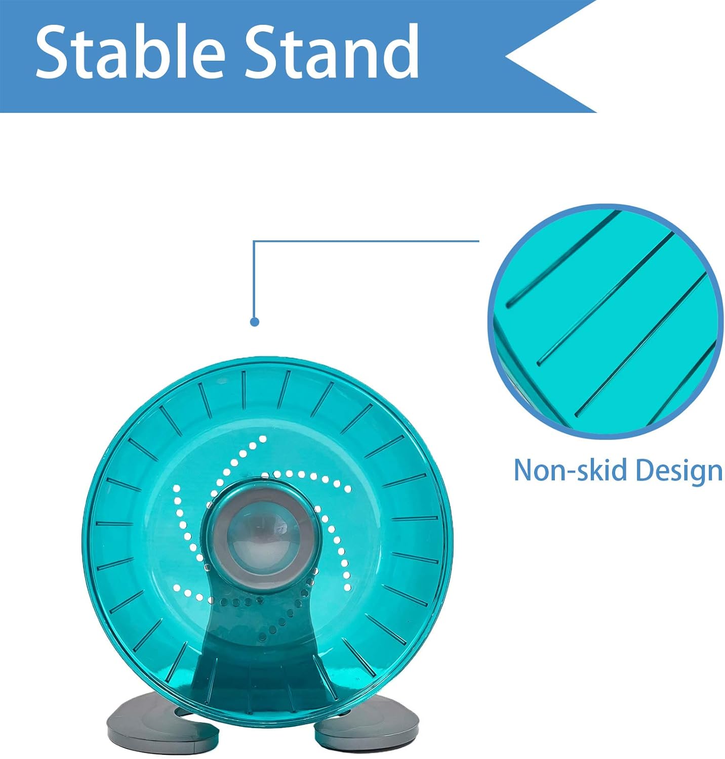 - STURDY - No need to install, placed directly on the flat floor of your pet's home. The wheel can be used either free-standing, with the suppiled stand, or be attached to wire hamster homes.