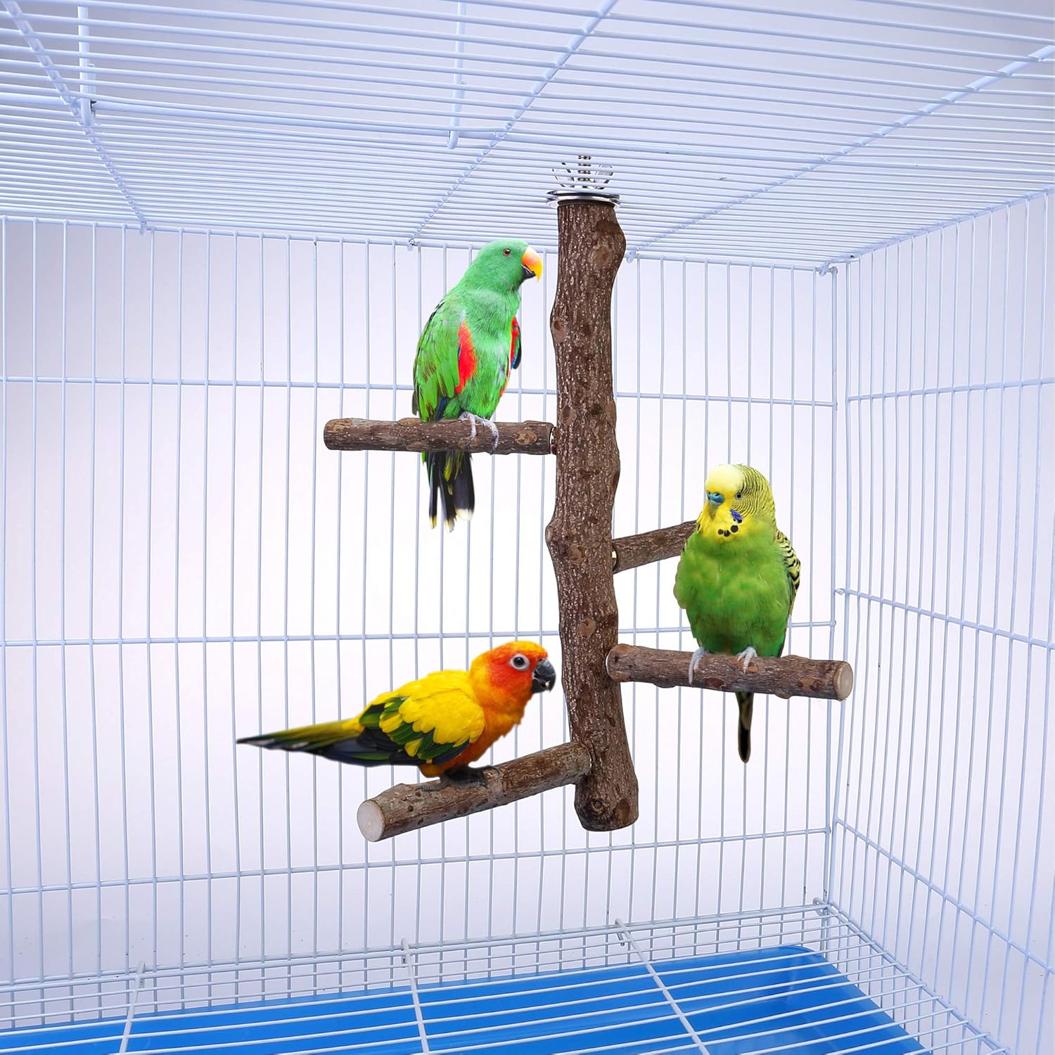 - DESIGN: The birdcage branch perches provide a habitat for the parrot to stand or rest in the cage. It allows 3-4 birds to play at the same time, your birds can play and get better communication with each other like wild birds. Perch toy also provides your pet with a nice and cozy place to exercise, relieves boredom and increases activity level.