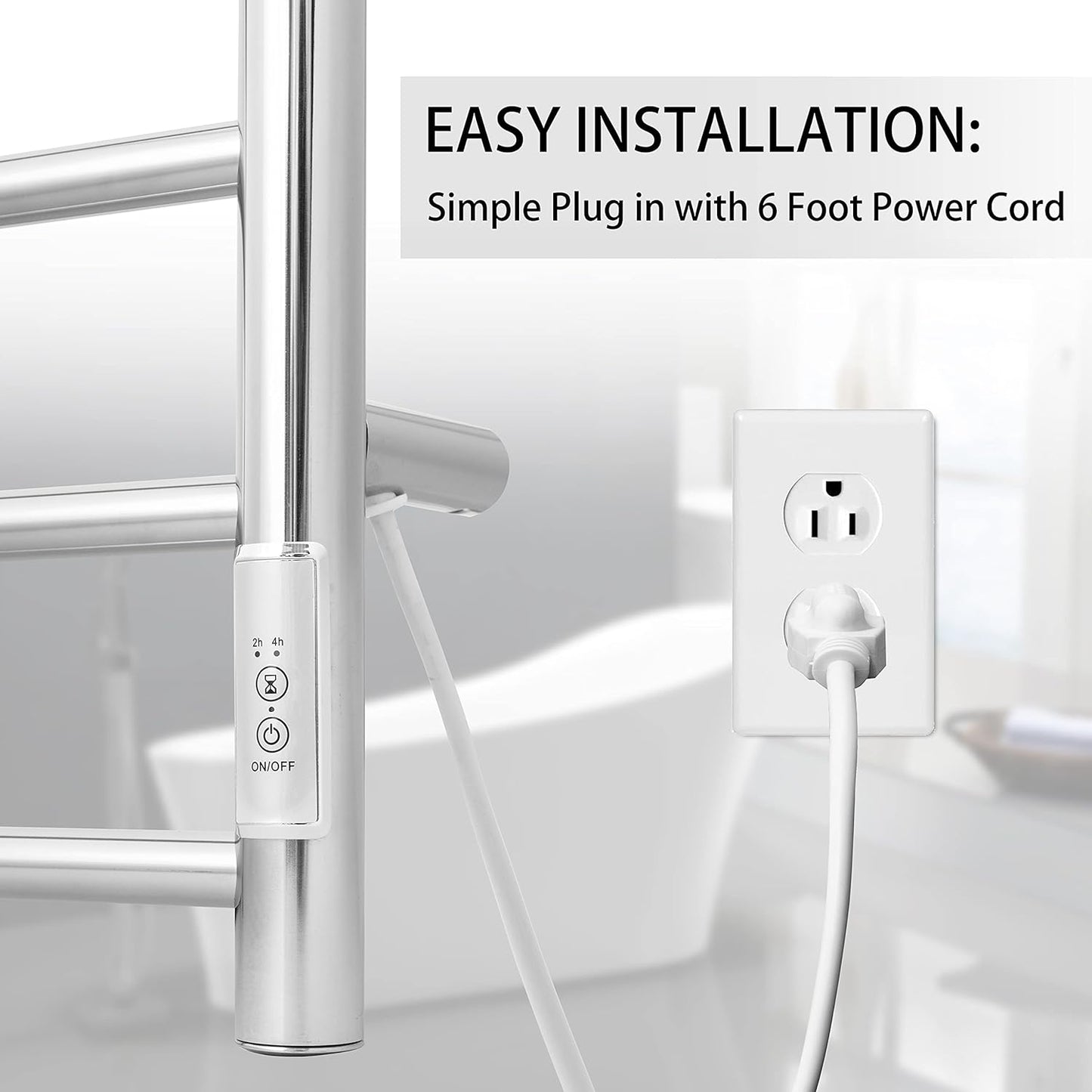 - Premium Quality with Elegant Look: The bath towel warmer is made of durable 304 stainless steel, easy to clean and durable use. IP56 Waterproof standard and wall-mounted design maximizes your floor space.