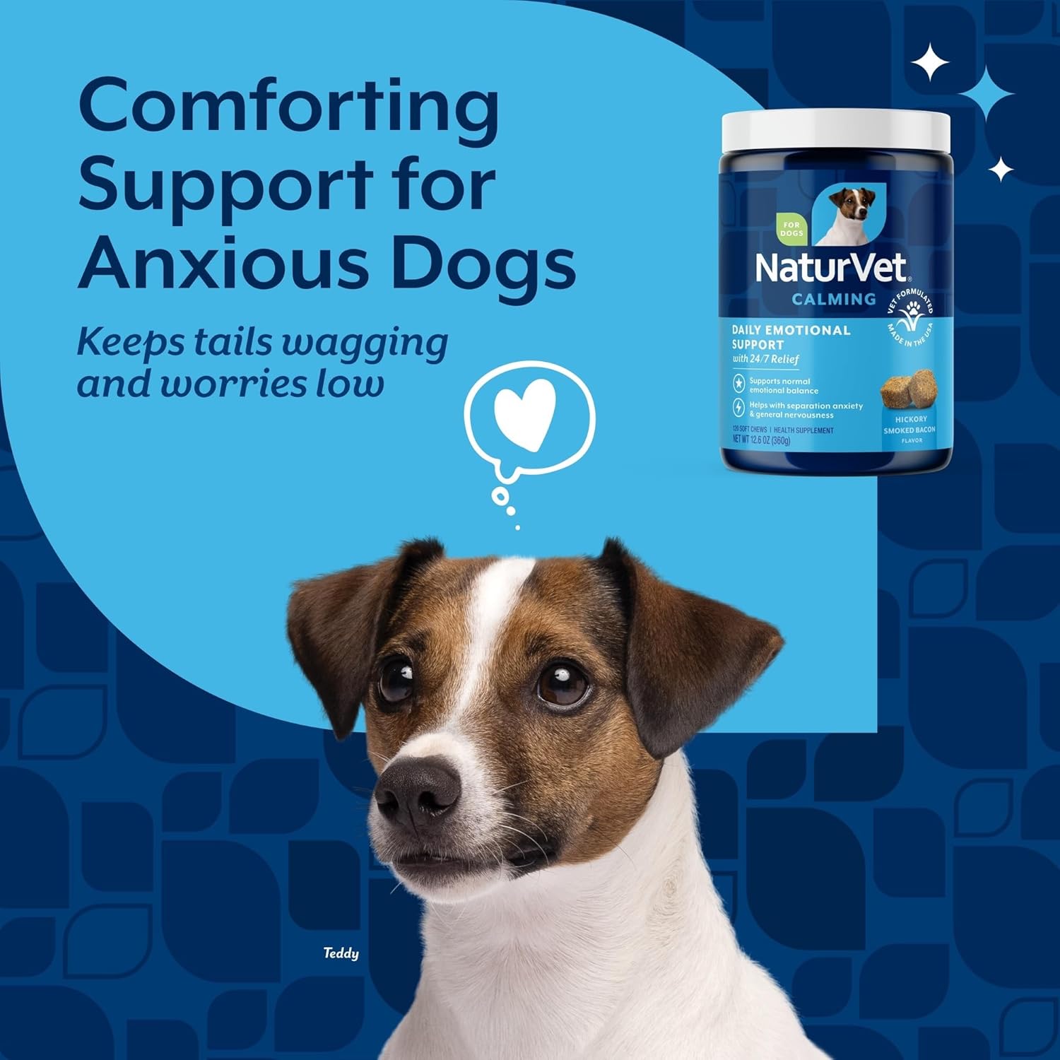 NaturVet Emotional Support Daily Calming Aid Dog Supplement - Helps Promote 24/7 Normal, Calm Behavior - for Dog Stress, Nervousness, Separation, Unwanted Behavior - 120ct Soft Chews